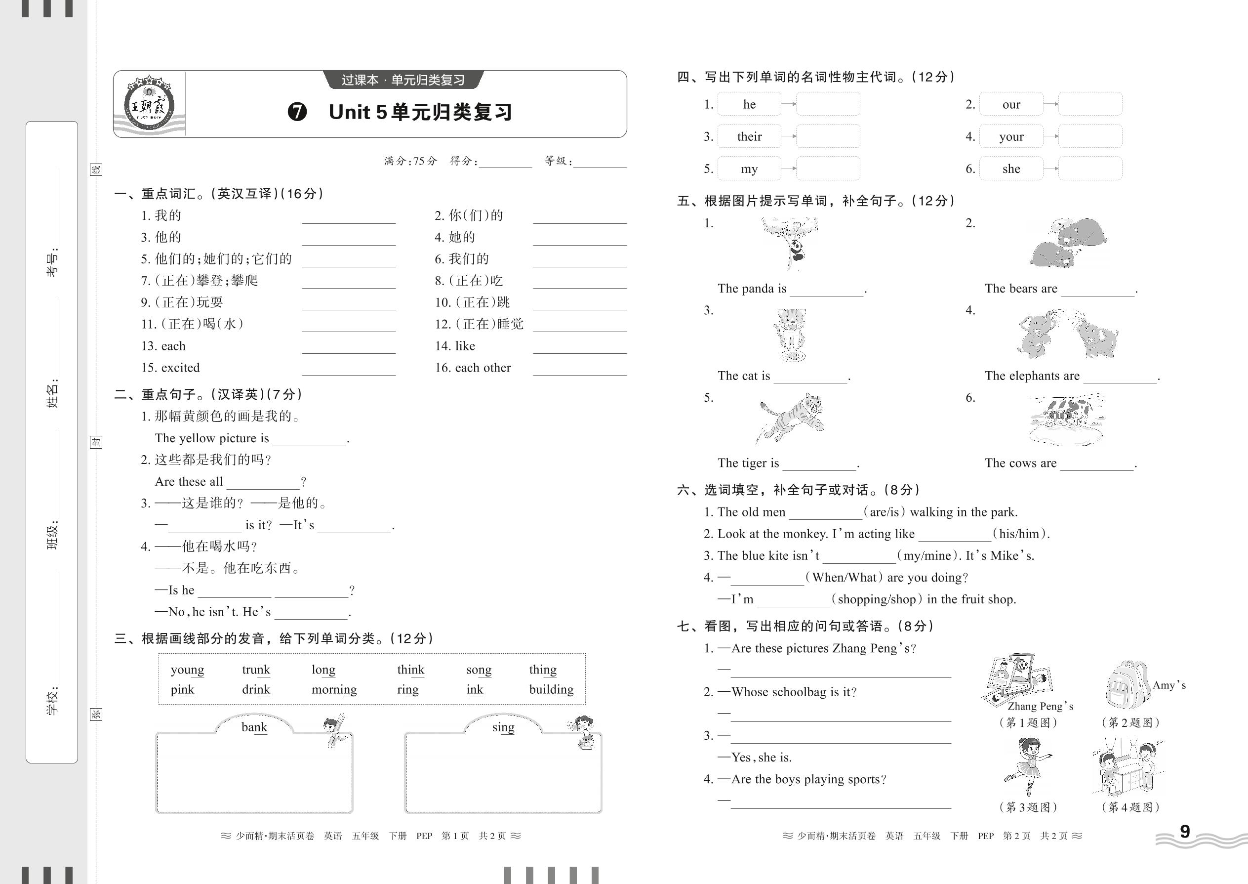 2024下册五年级英语人教PEP版 期末过课本HY版·Unit 5单元归类复习_R240427162527467