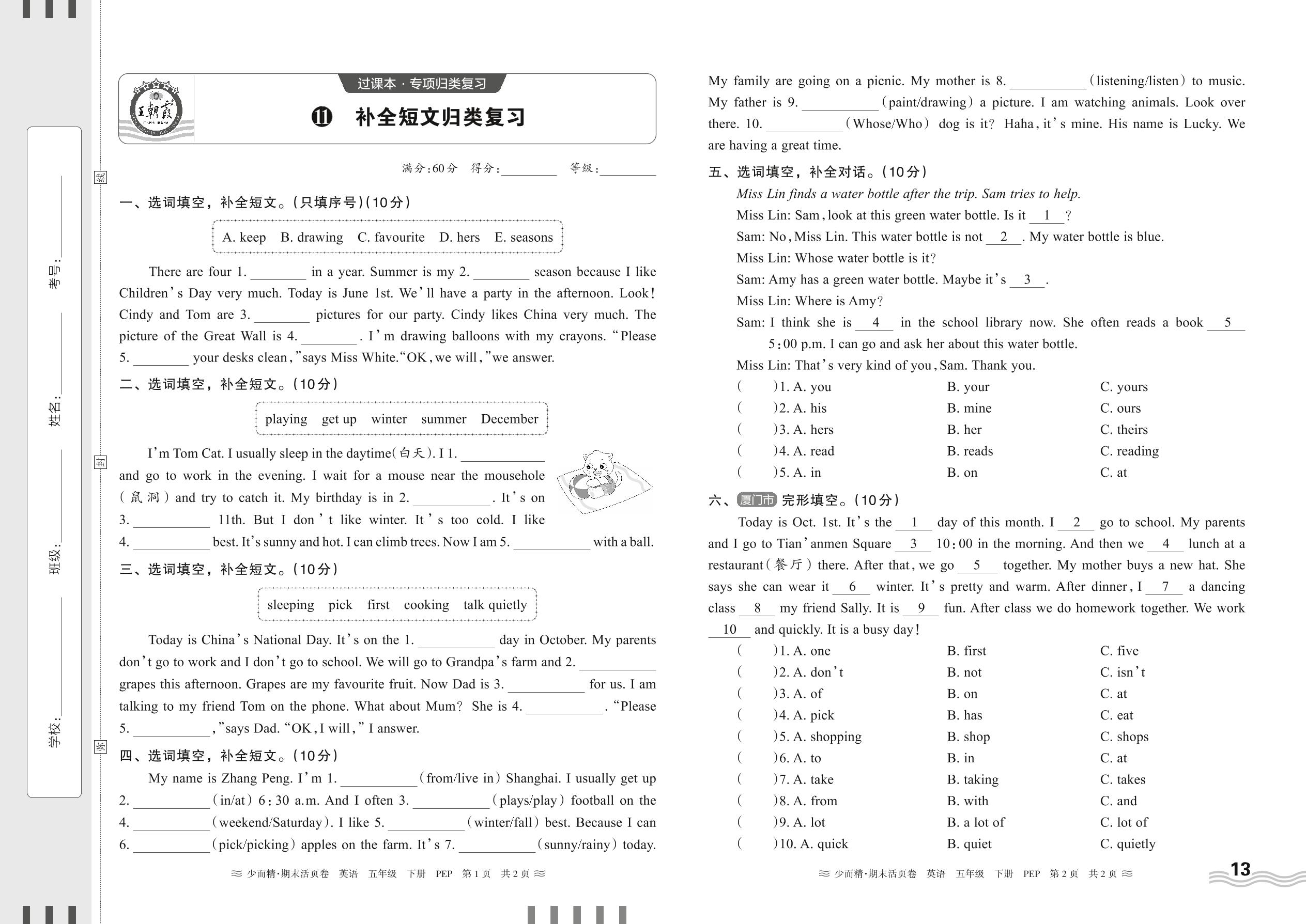 2024下册五年级英语人教PEP版 期末过课本HY版·补全短文归类复习_R240427162527061