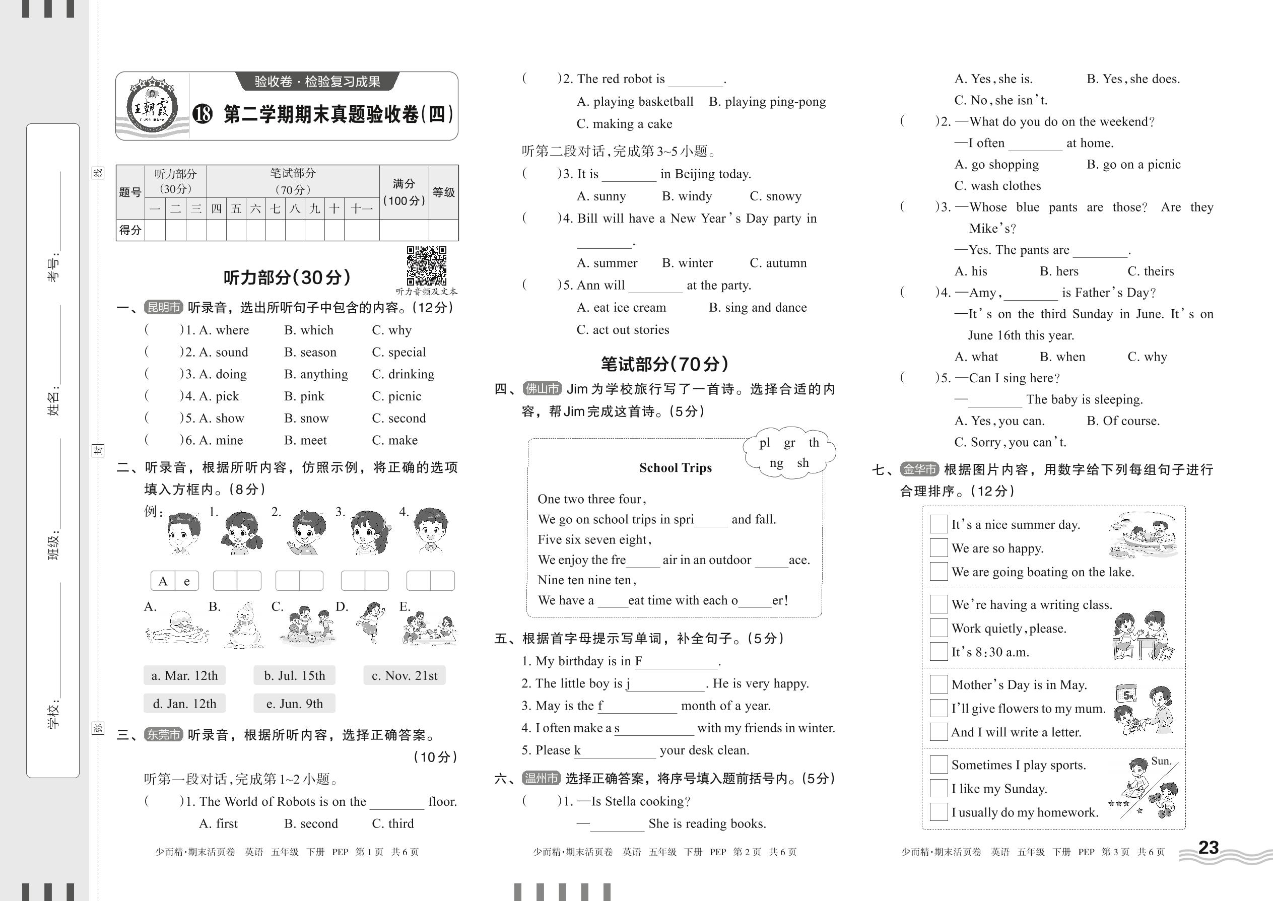 2024下册五年级英语人教PEP版 第二学期期末真题验收卷(四)_R240427162531886
