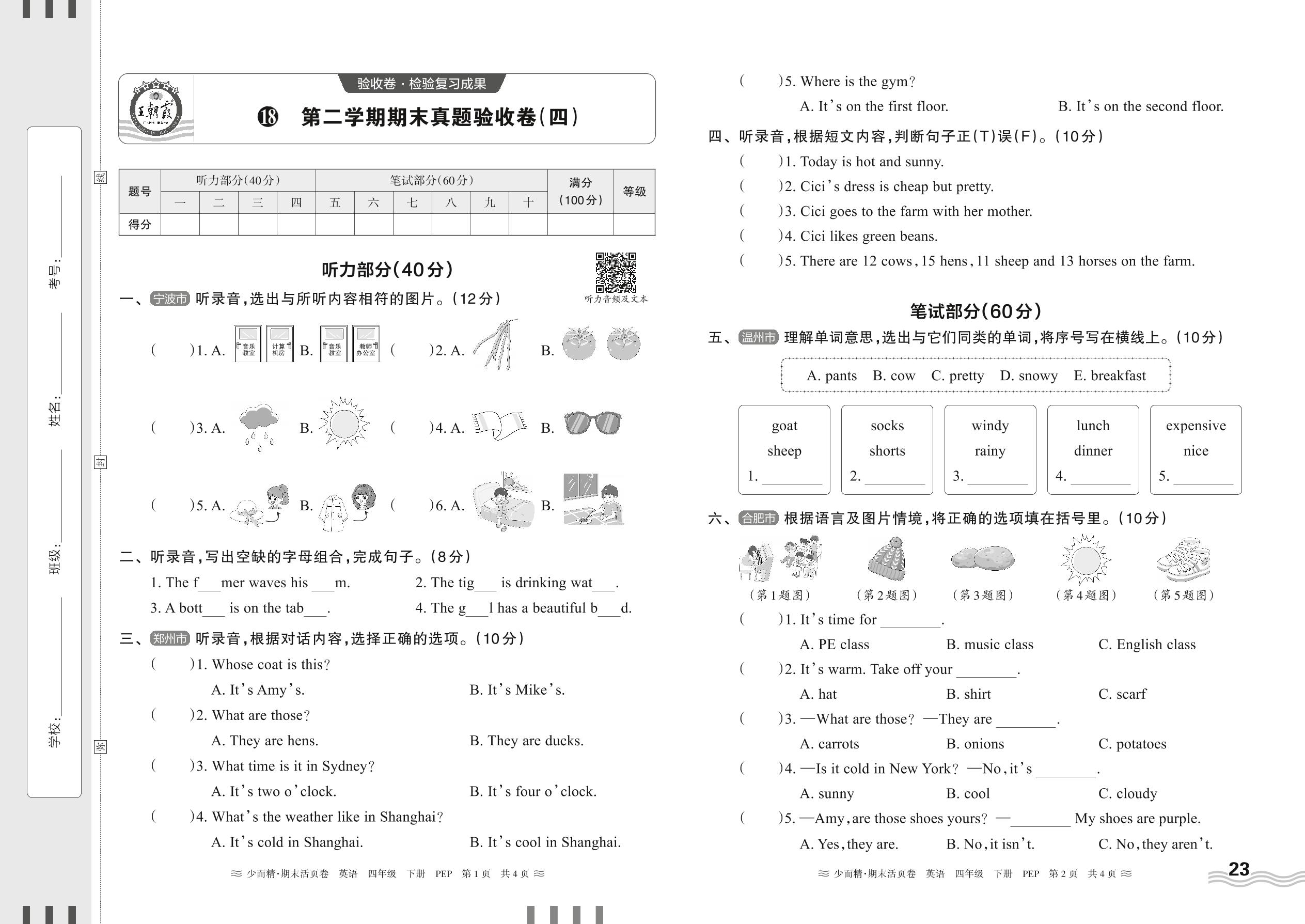 2024下册四年级英语人教PEP版 第二学期期末真题验收卷(四)