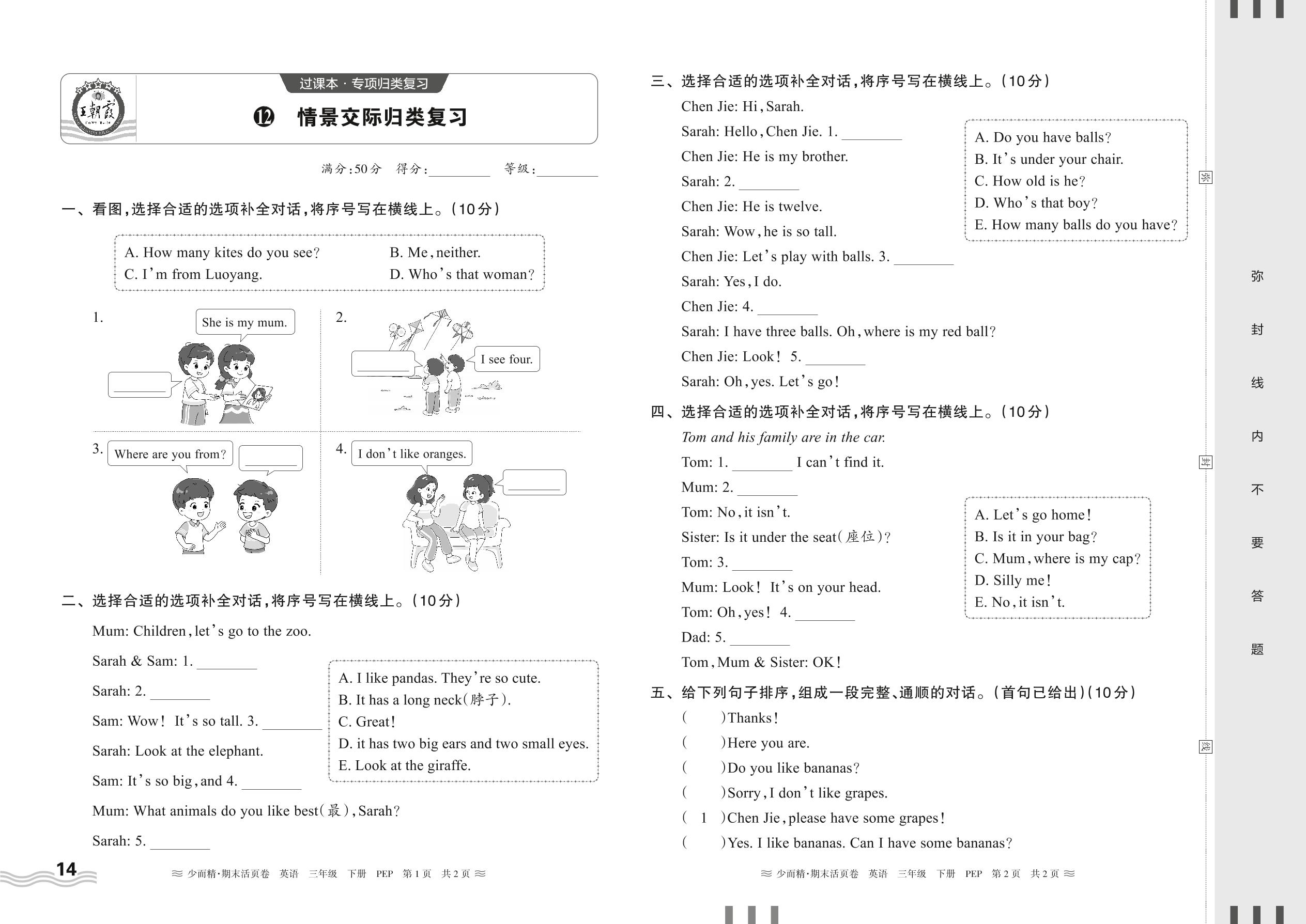 2024下册三年级英语人教PEP版 期末过课本HY版·情景交际归类复习