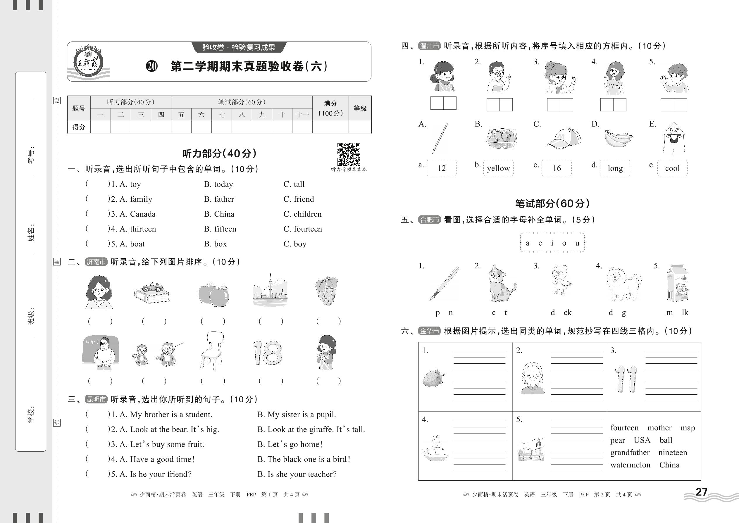 2024下册三年级英语人教PEP版 第二学期期末真题验收卷(六)