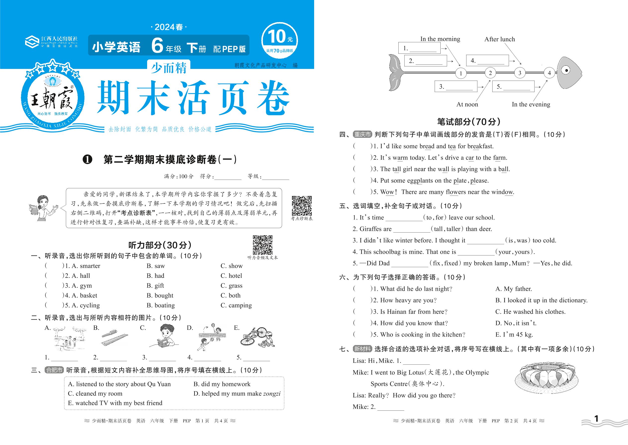 2024下册六年级英语人教PEP版 第二学期期末摸底诊断卷(一)