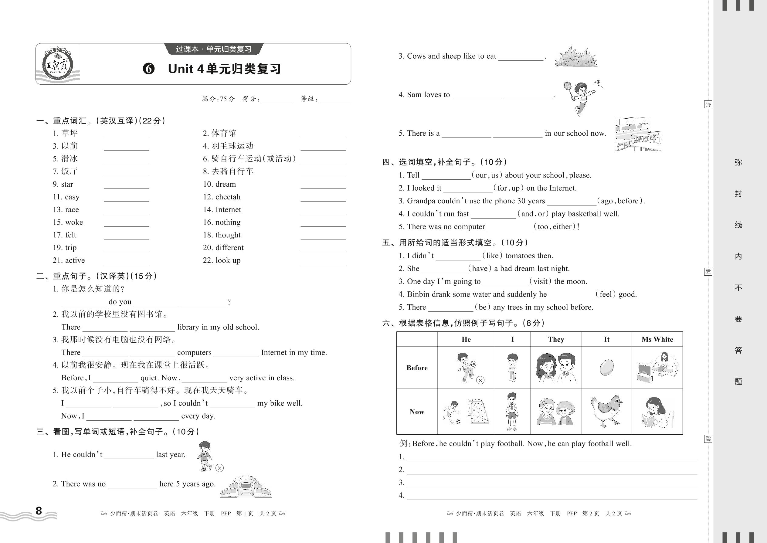 2024下册六年级英语人教PEP版 期末过课本HY版·Unit 4单元归类复习