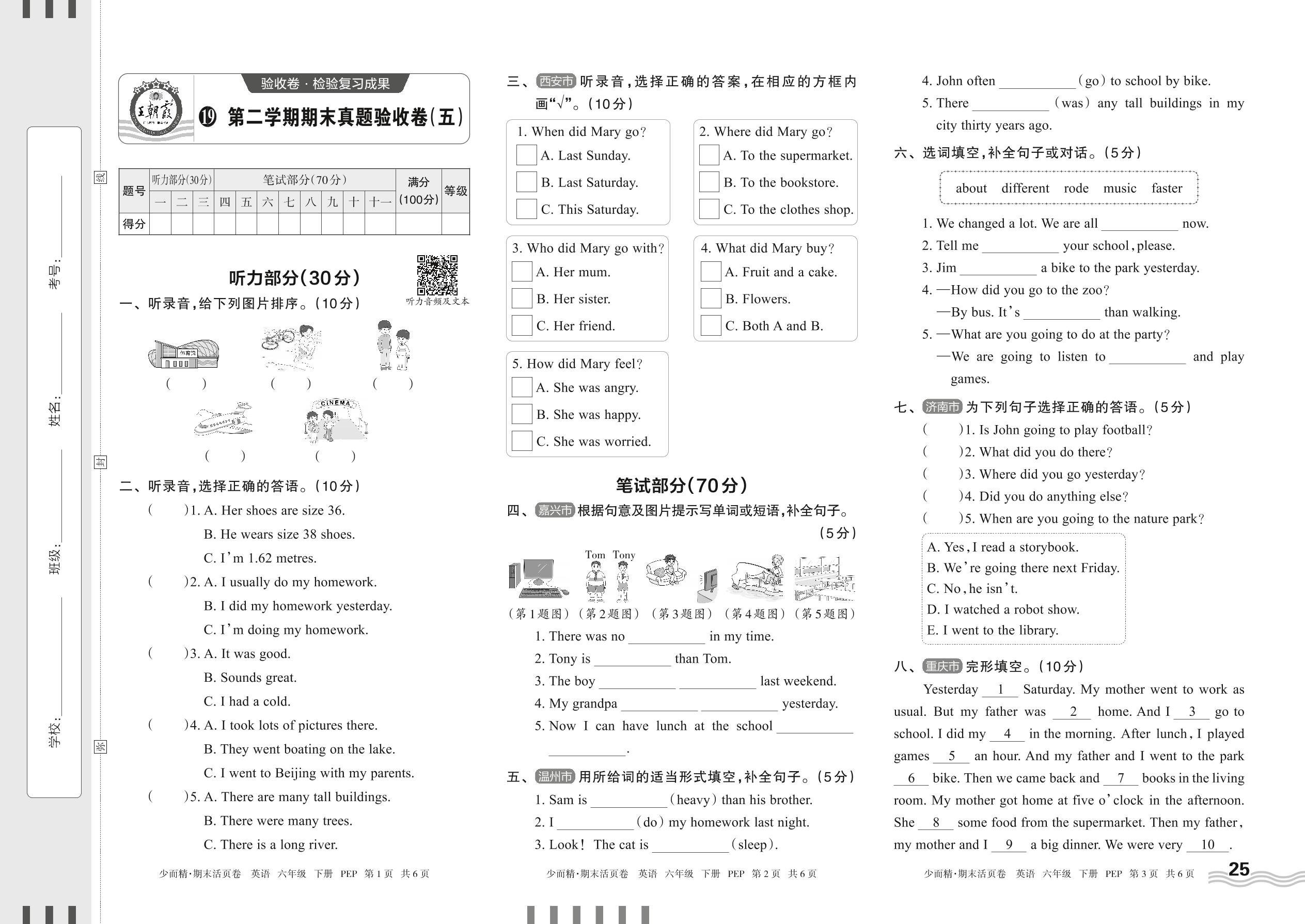 2024下册六年级英语人教PEP版 第二学期期末真题验收卷(五)