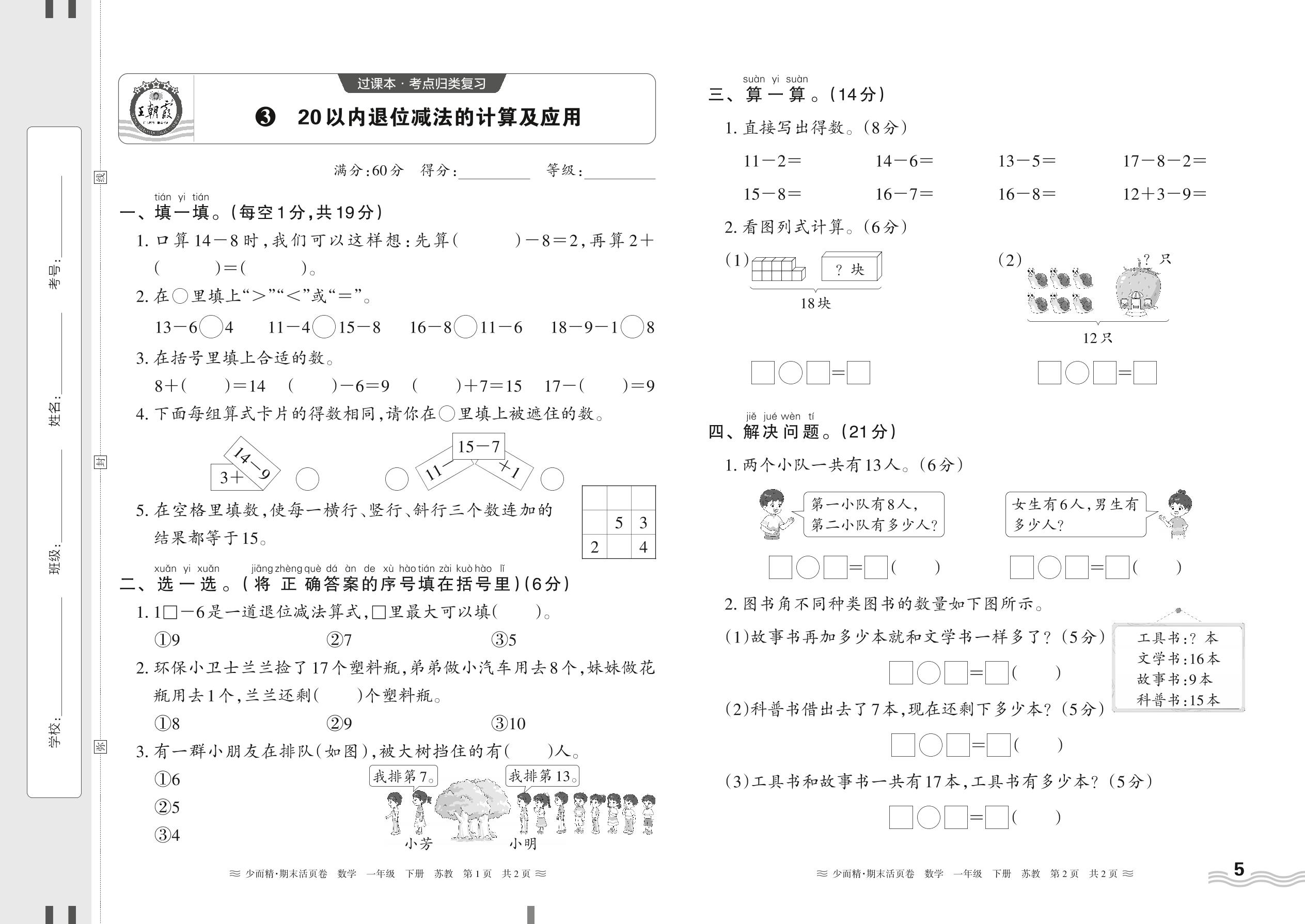 2024下册一年级数学苏教版 期末过课本HY版·20以内退位减法的计算及应用正文【3】