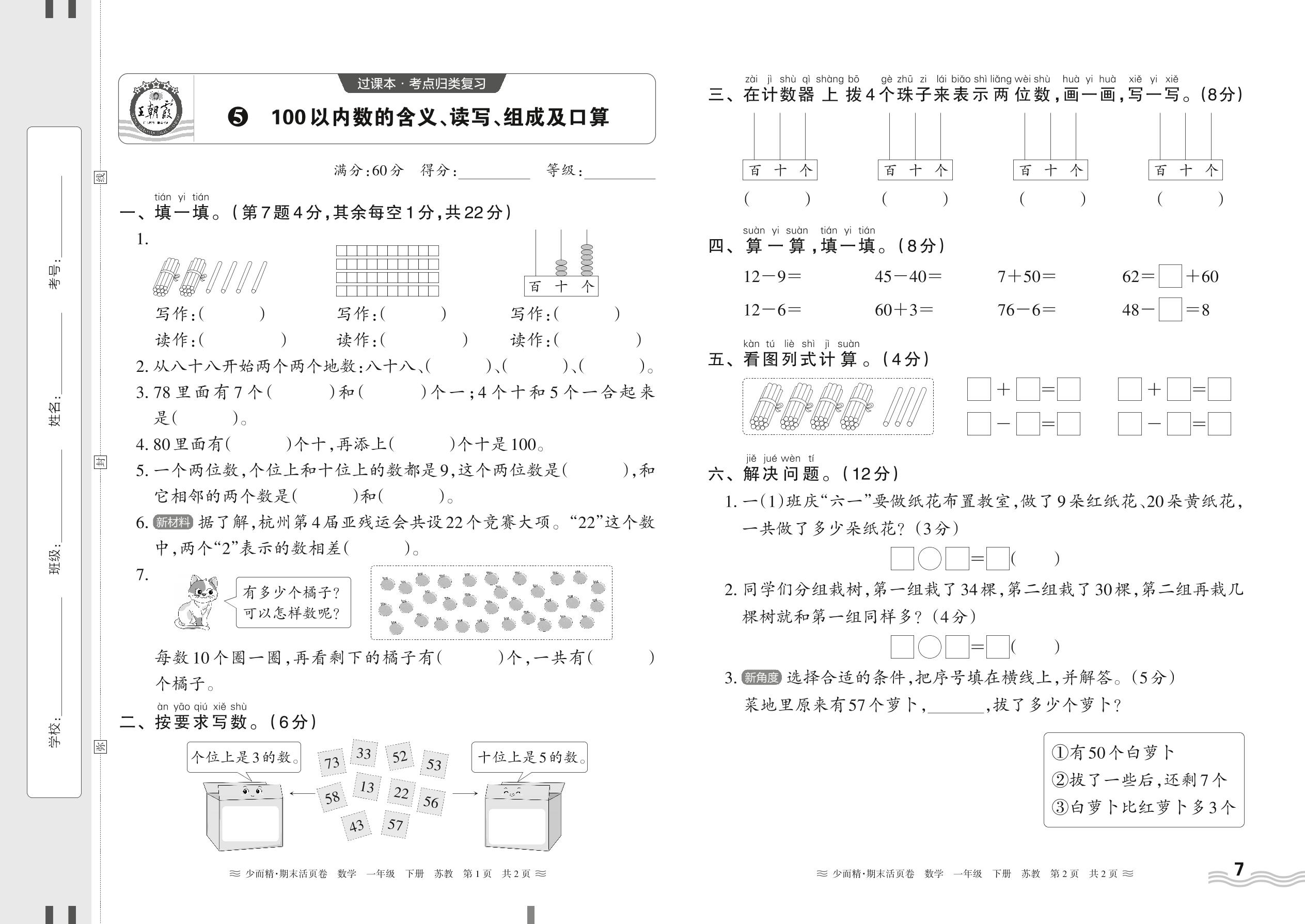 2024下册一年级数学苏教版 期末过课本HY版·100以内数的含义、读写、组成及口算正文【5】