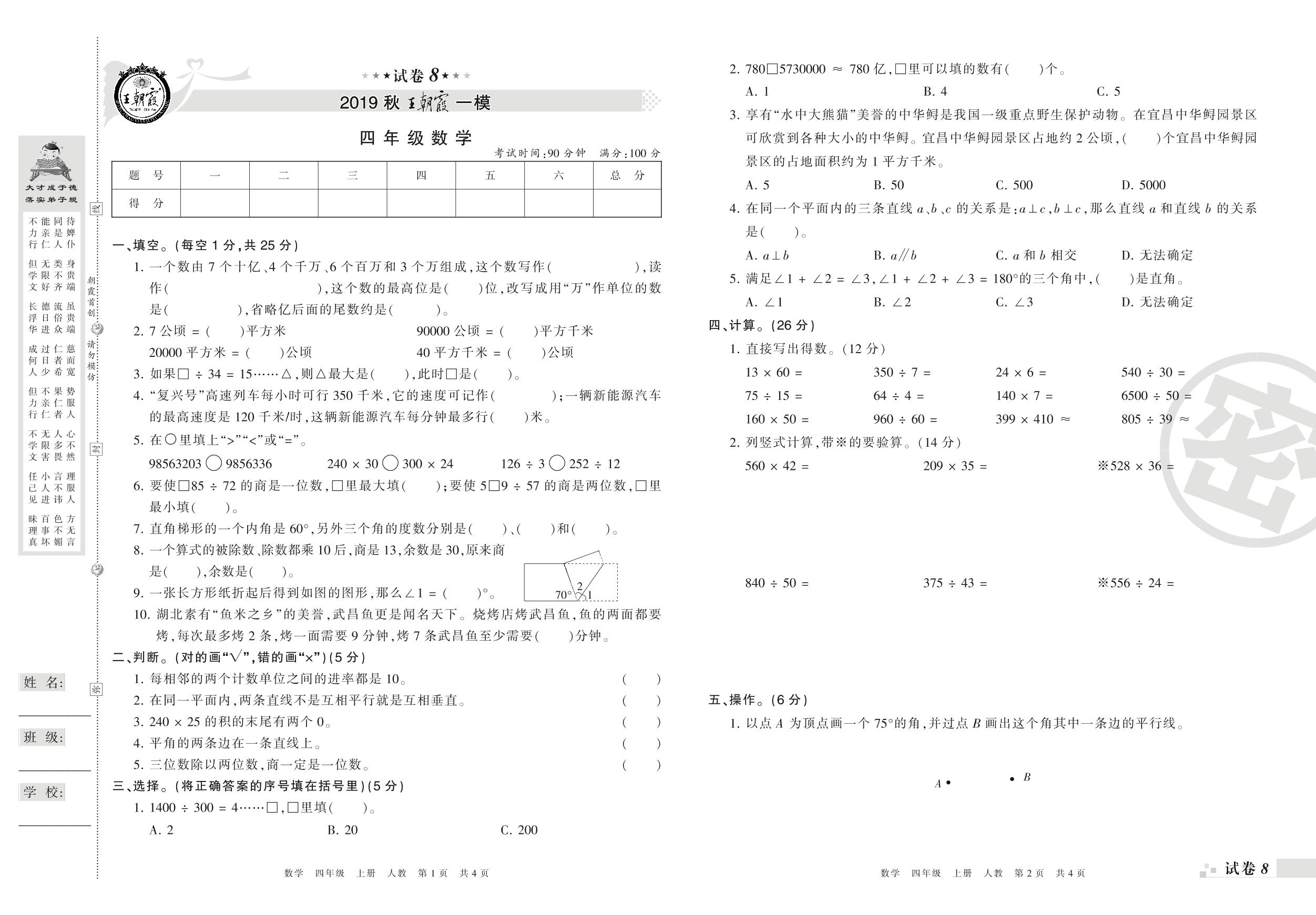 王朝霞期末模拟卷四年级上册数学(人教版)_R210804145031【8】