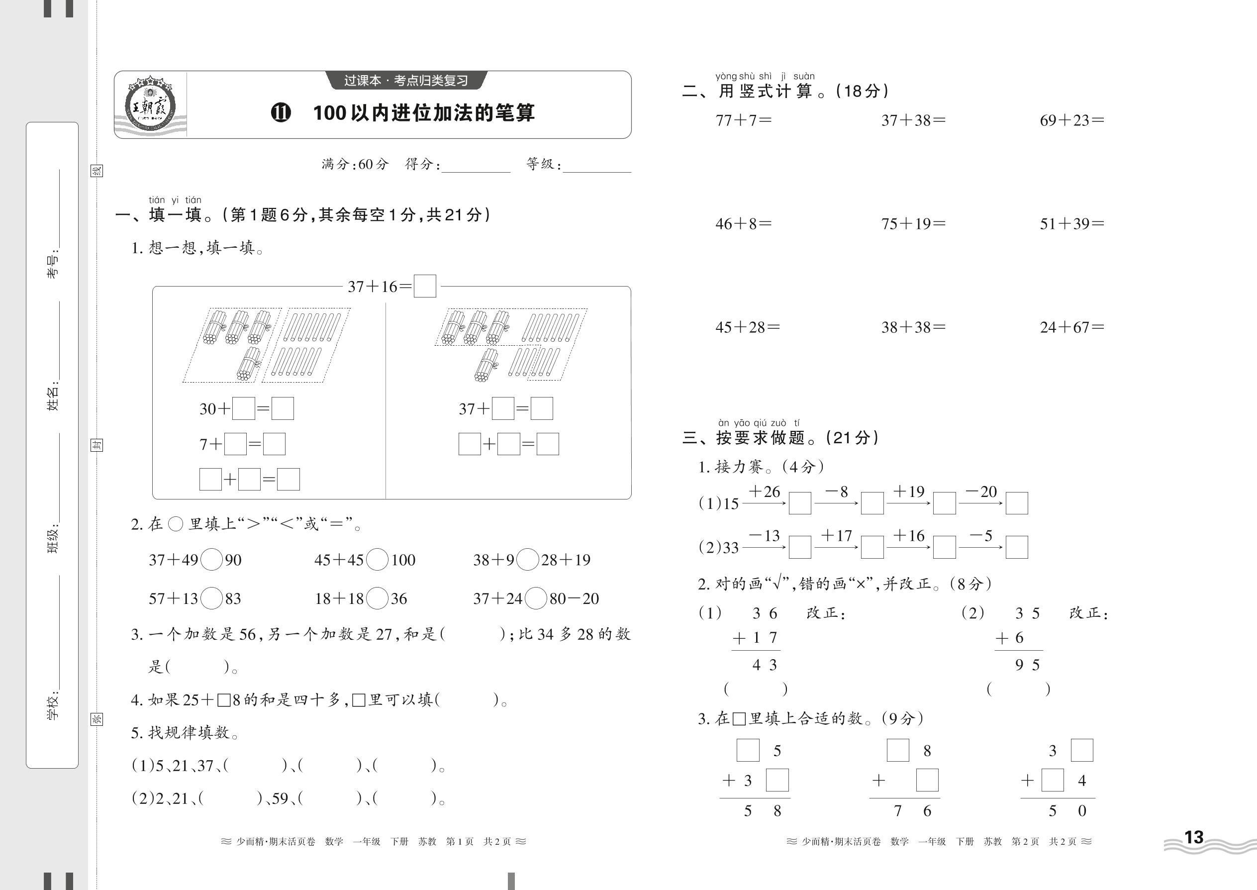2024下册一年级数学苏教版 期末过课本HY版·100以内进位加法的笔算正文【11】