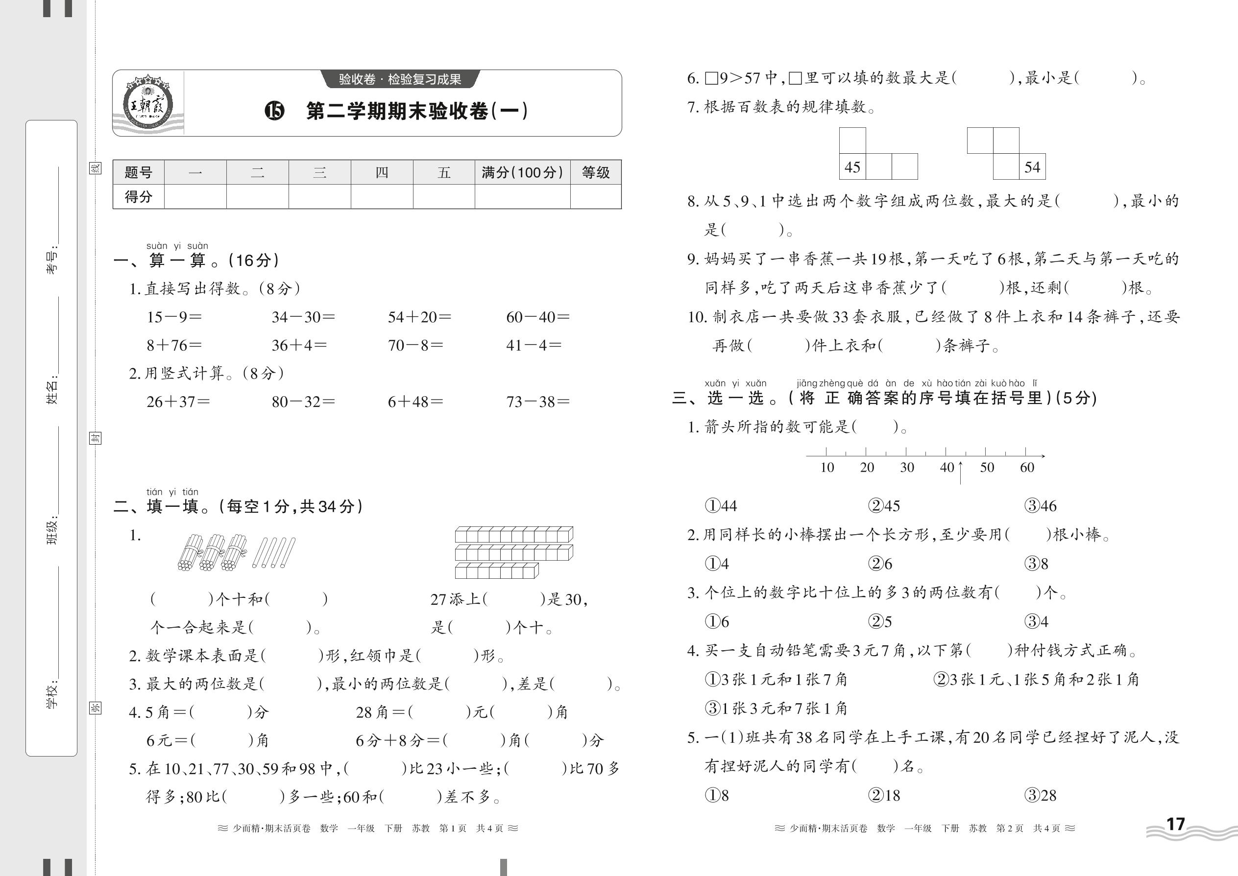 2024下册一年级数学苏教版 第二学期期末真题验收卷(一)