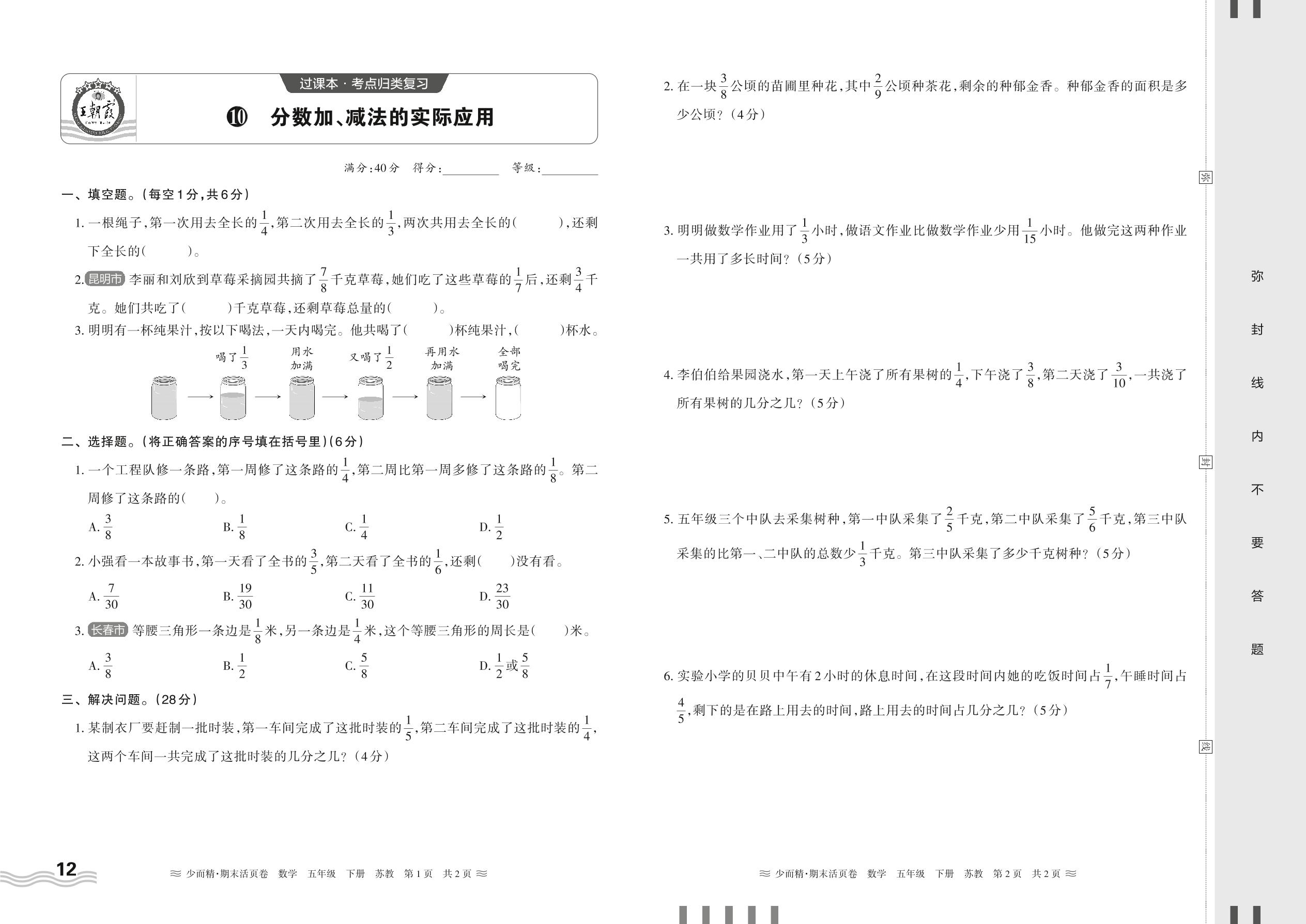 2024下册五年级数学苏教版 期末过课本HY版·分数加、减法的实际应用正文【10】