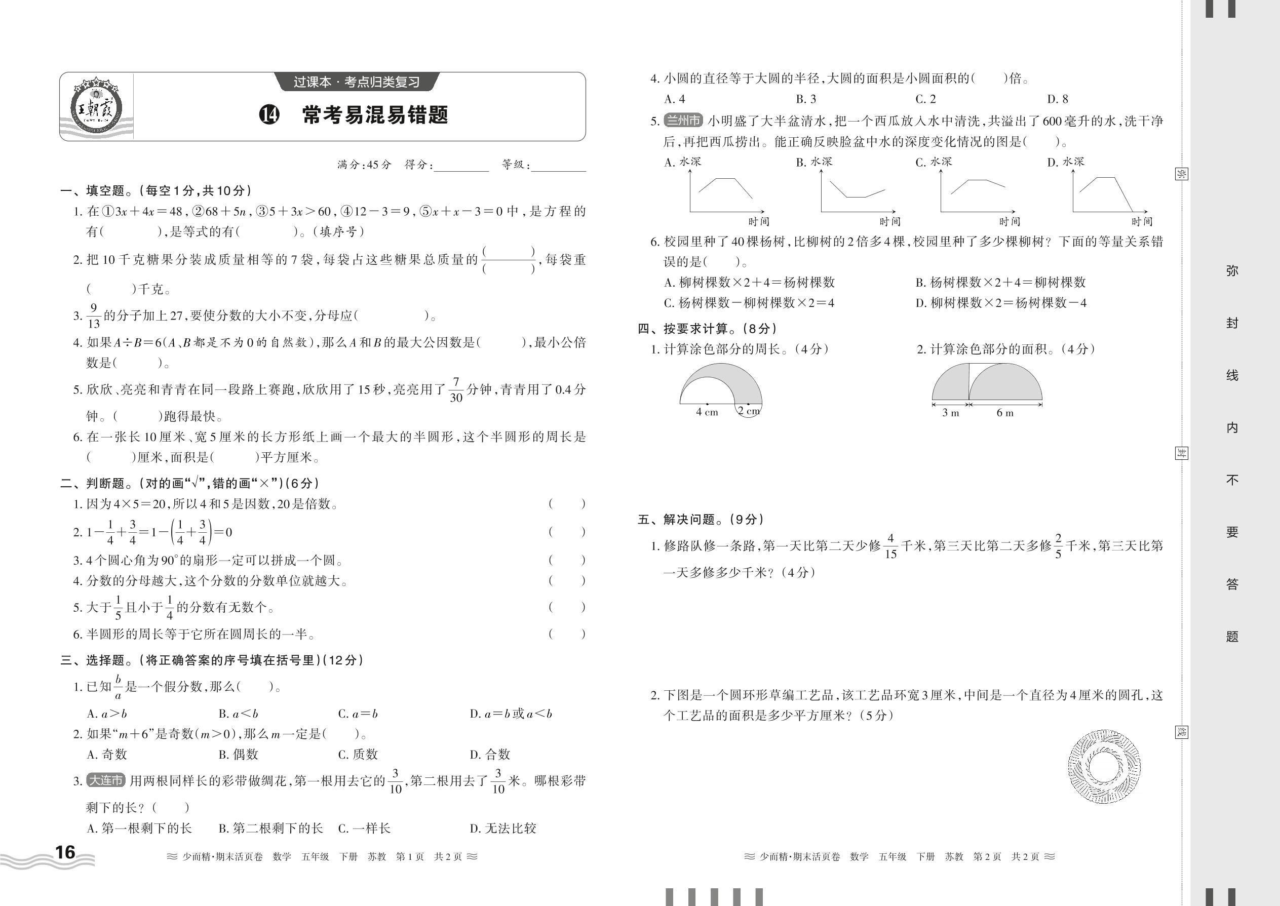 2024下册五年级数学苏教版 期末过课本HY版·常考易混易错题正文【14】