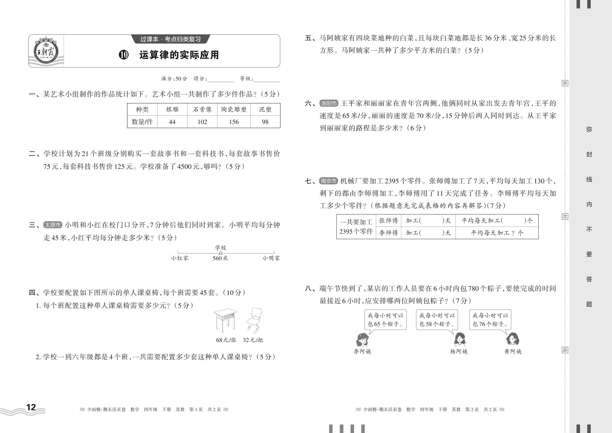 2024下册四年级数学苏教版 期末过课本HY版·运算律的实际应用正文【10】