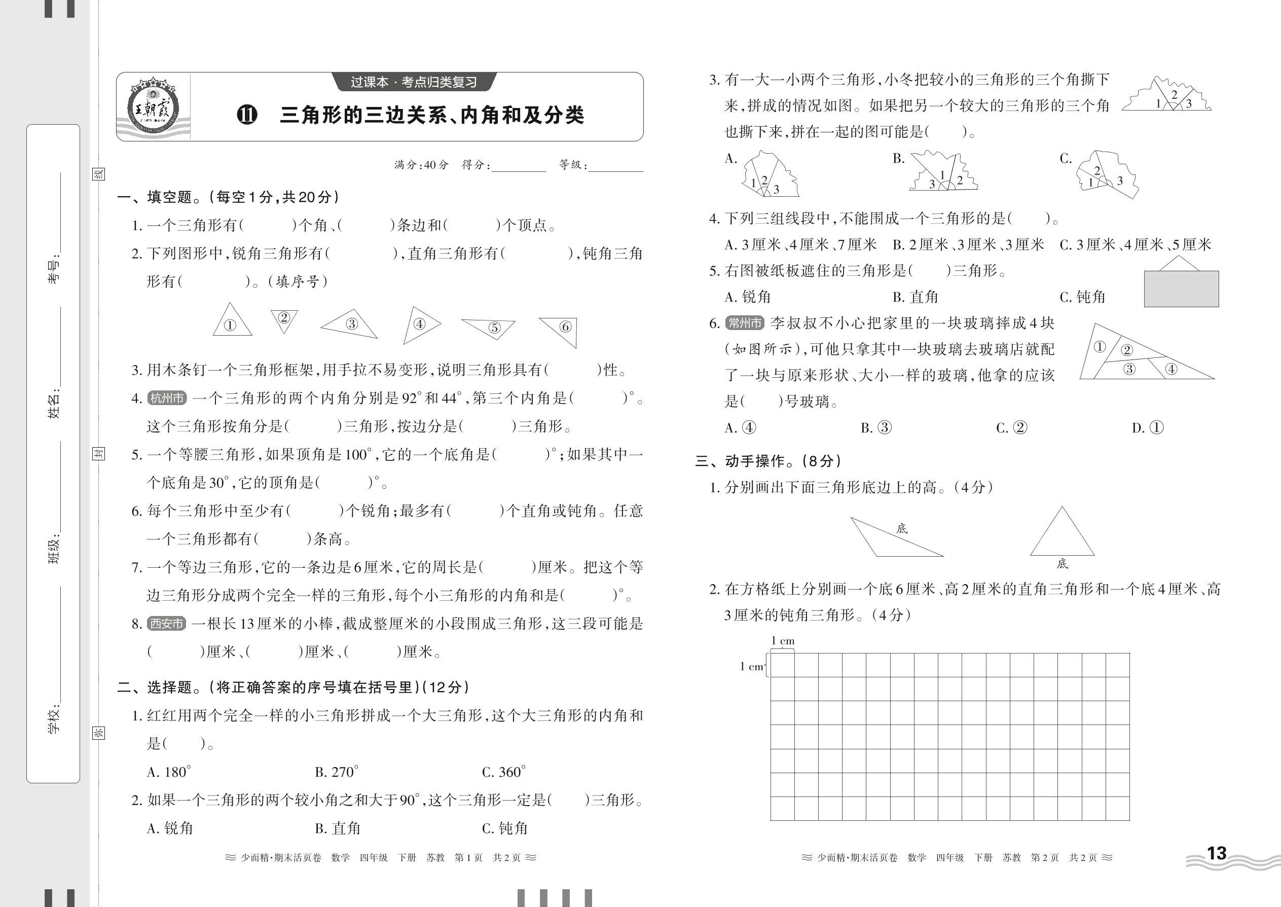 2024下册四年级数学苏教版 期末过课本HY版·三角形的三边关系、内角和及分类正文【11】
