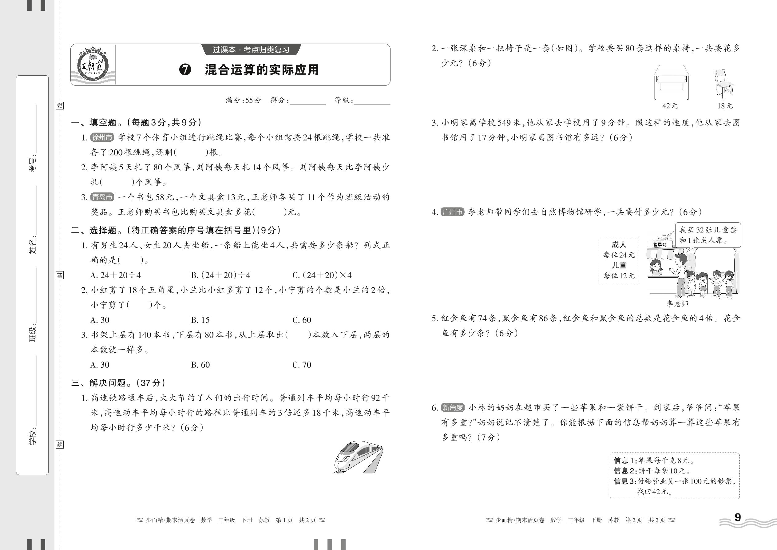 2024下册三年级数学苏教版 期末过课本HY版·混合运算的实际应用正文【7】
