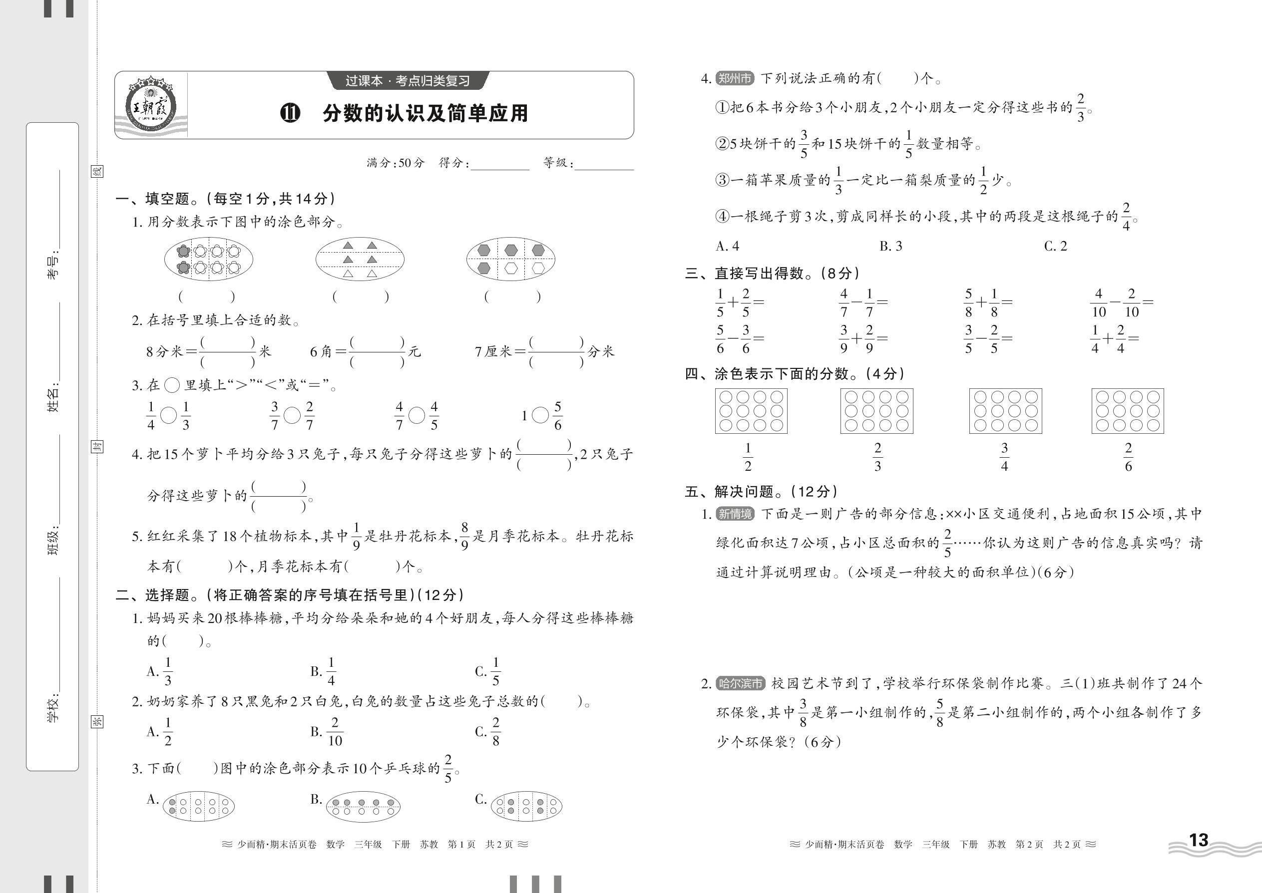 2024下册三年级数学苏教版 期末过课本HY版·分数的认识及简单应用正文【11】