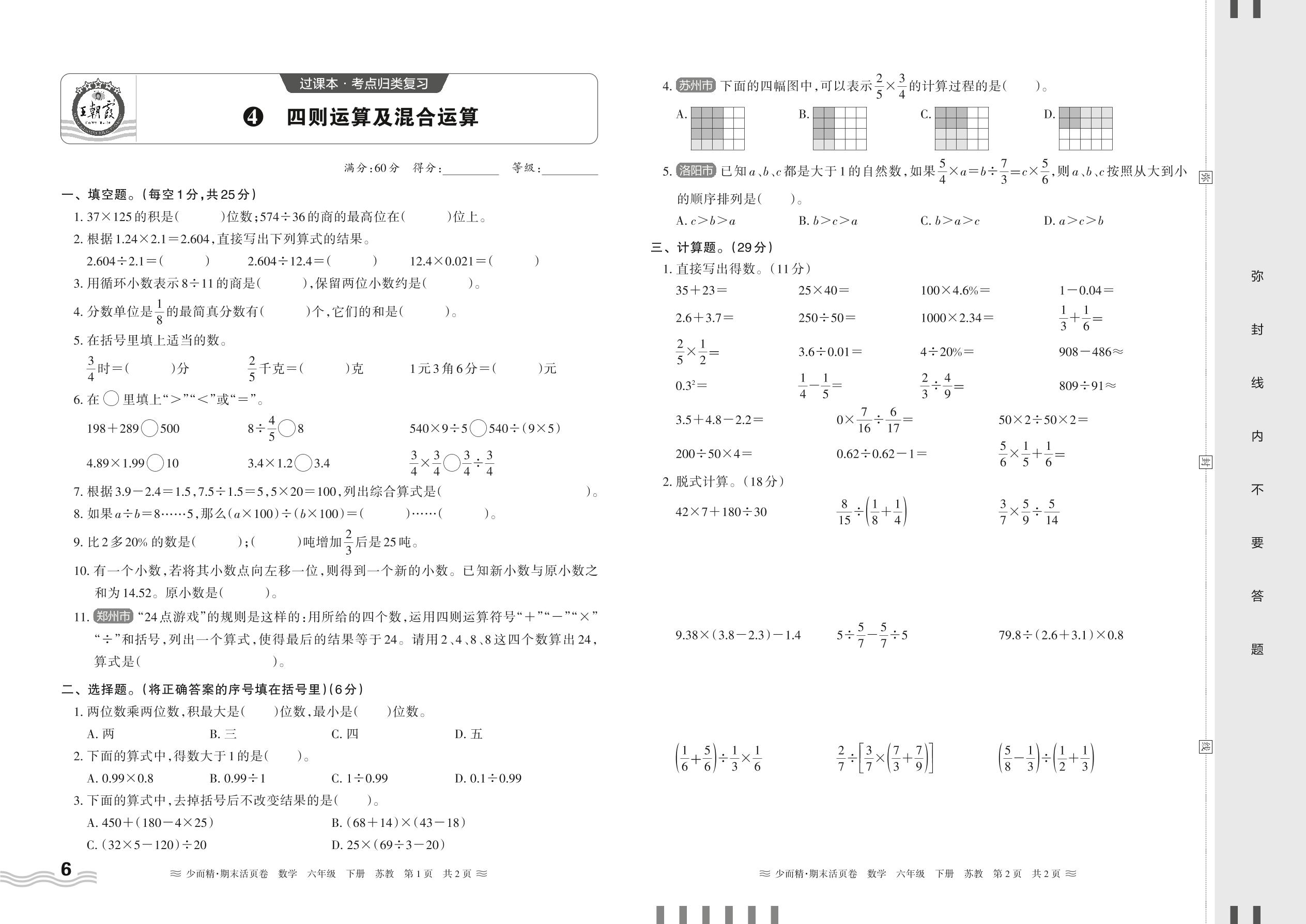 2024下册六年级数学苏教版 期末过课本HY版·四则运算及混合运算正文【4】