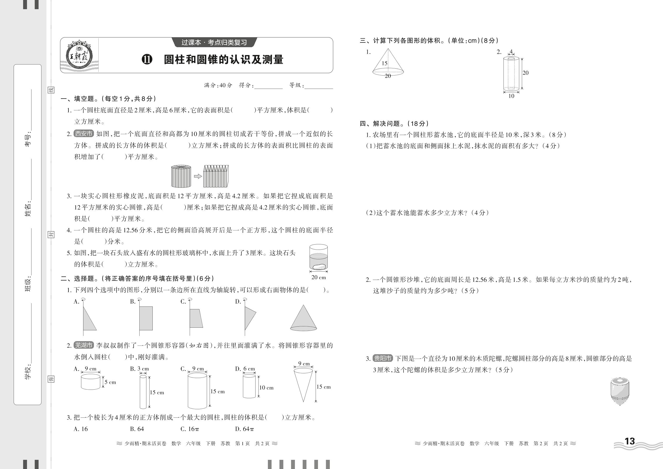 2024下册六年级数学苏教版 期末过课本HY版·圆柱和圆锥的认识及测量正文【11】