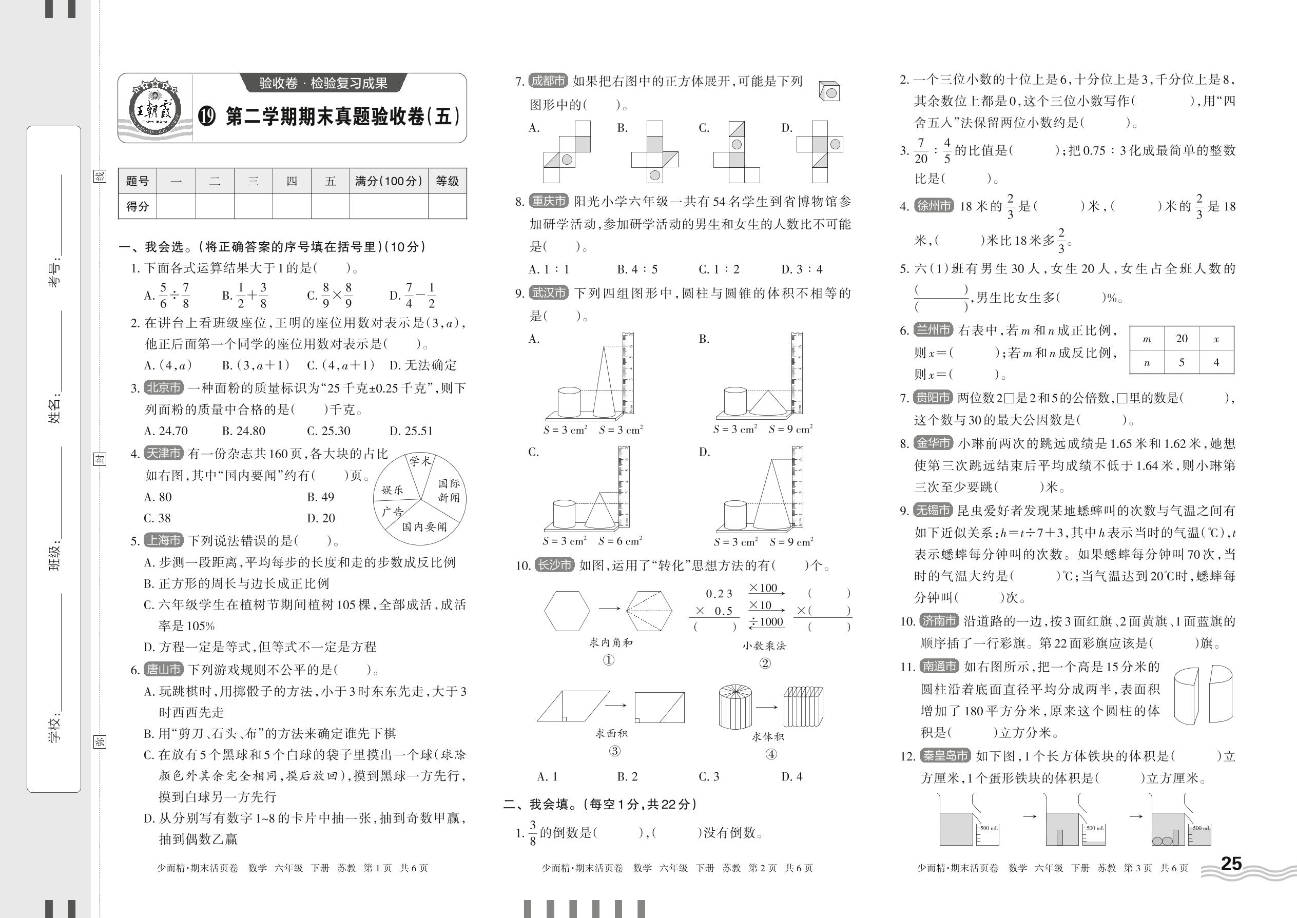 六年级数学苏教版下册期末卷