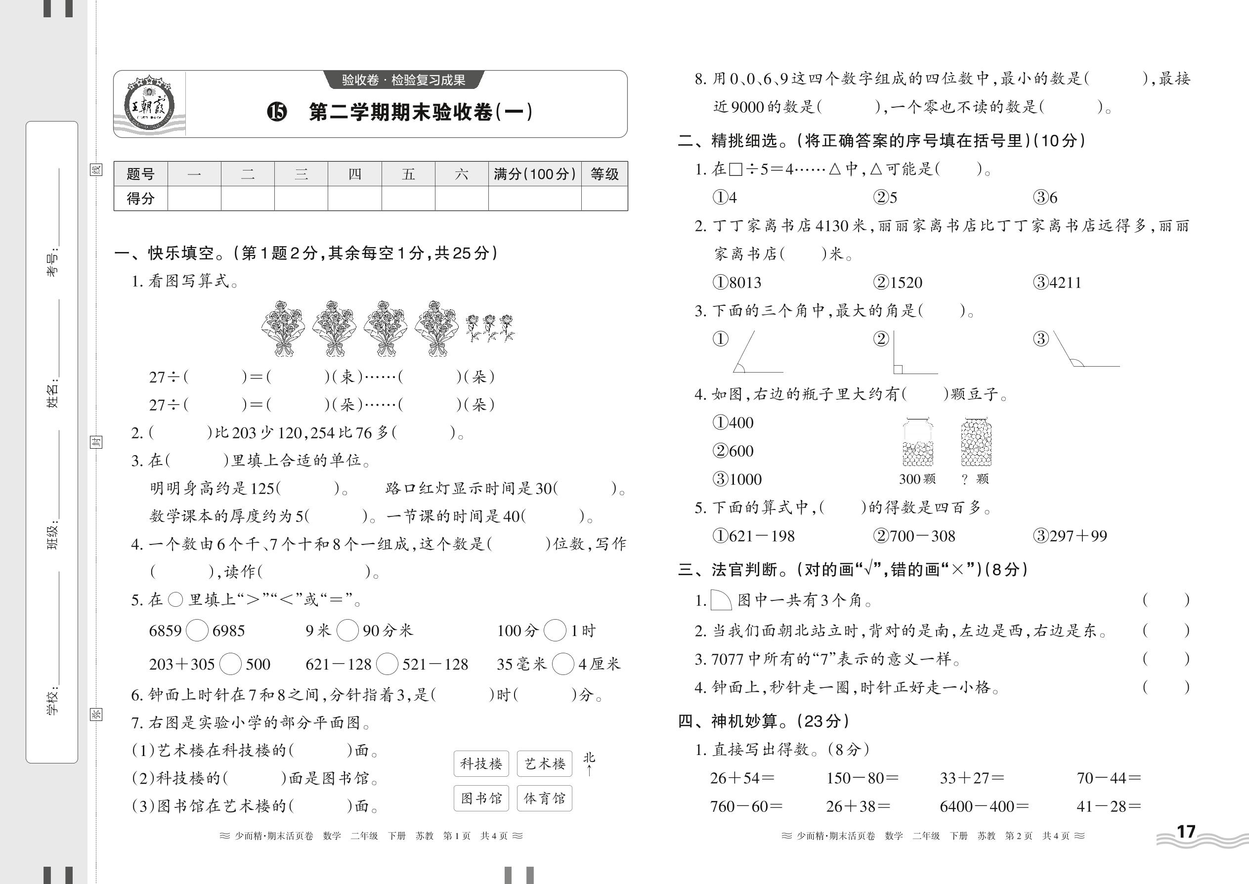 2024下册二年级数学苏教版 第二学期期末真题验收卷(一)