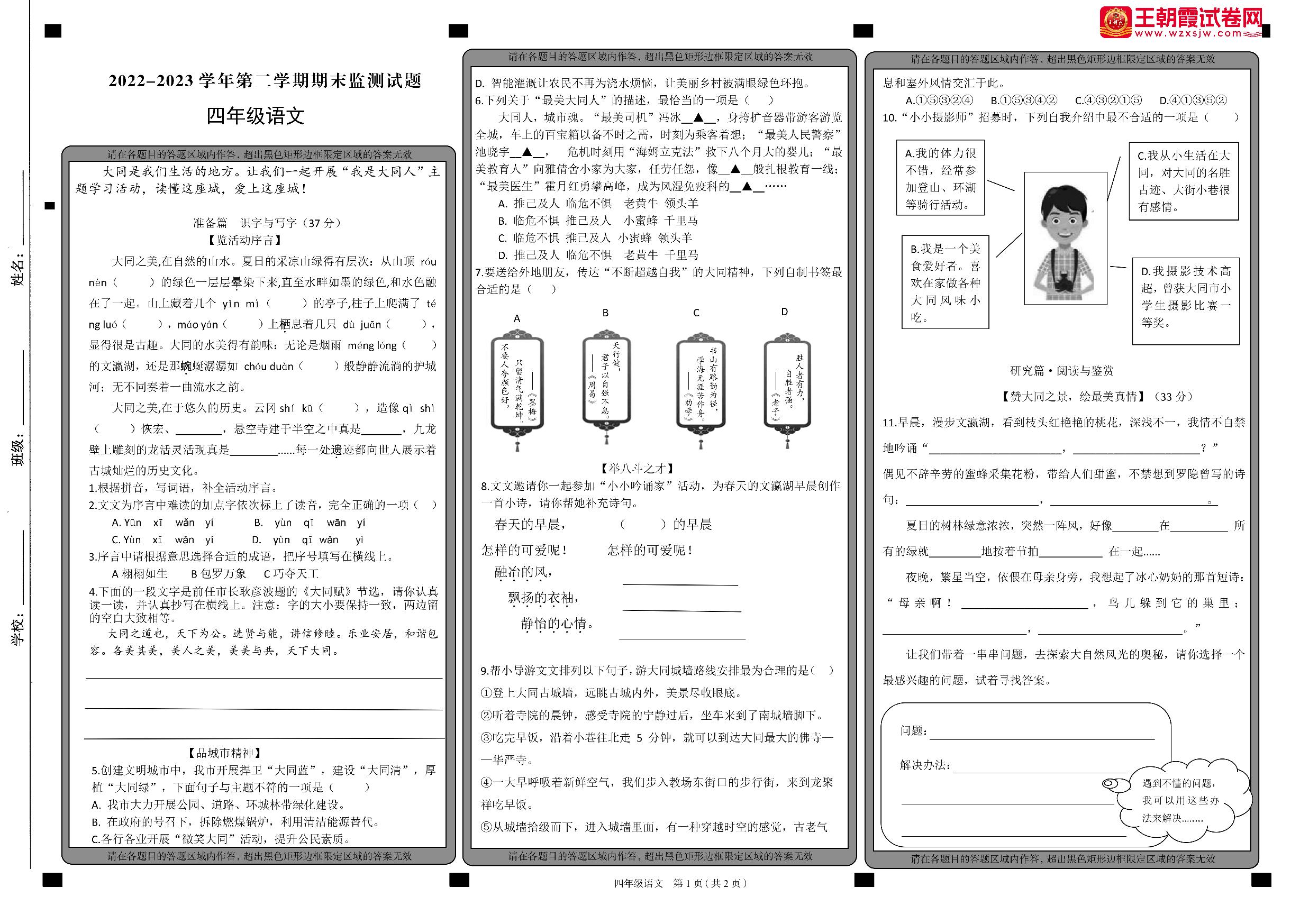 山西省大同市新荣区2022-2023学年第二学期期末监测试题四年级语文(人教版)