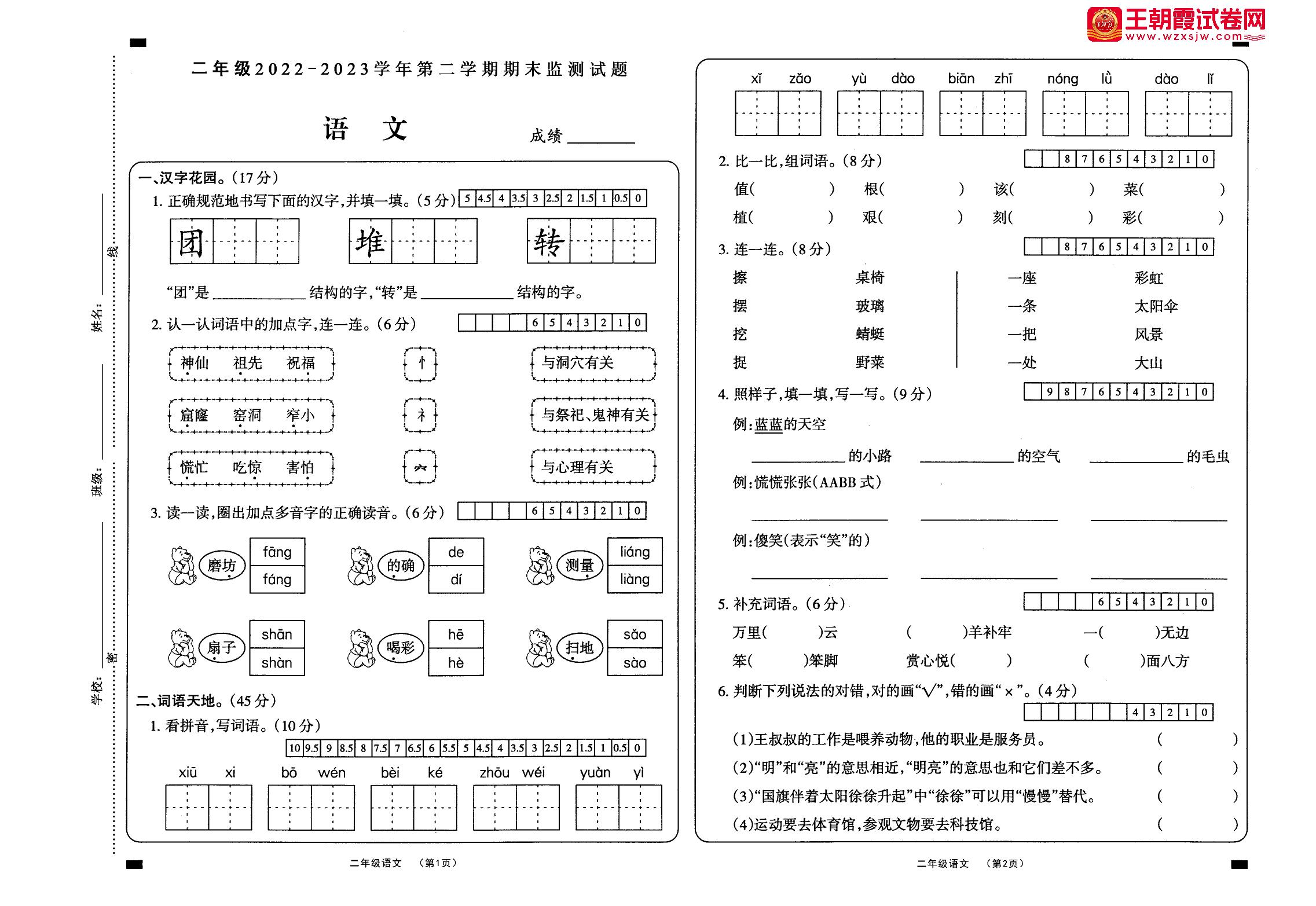 山西省大同市新荣区2022-2023学年第二学期期末监测试题二年级语文(人教版)