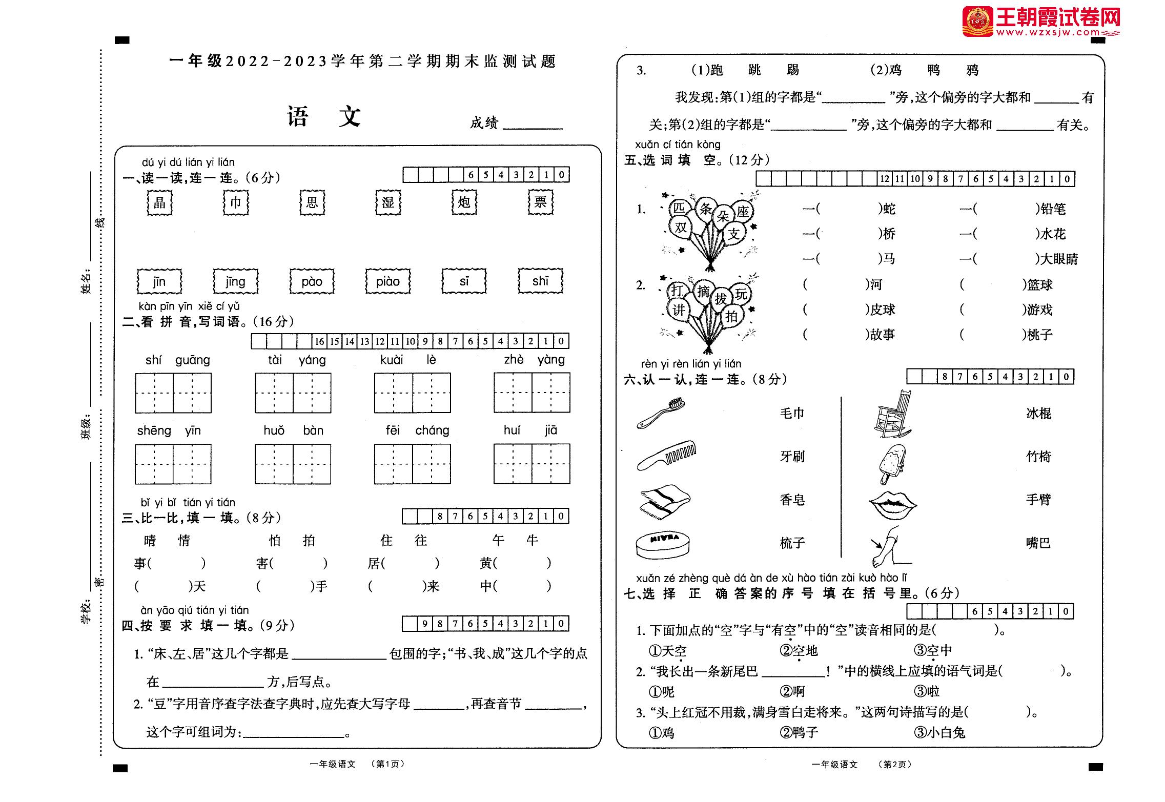 山西省大同市新荣区2022-2023学年第二学期期末监测试题一年级语文(人教版)