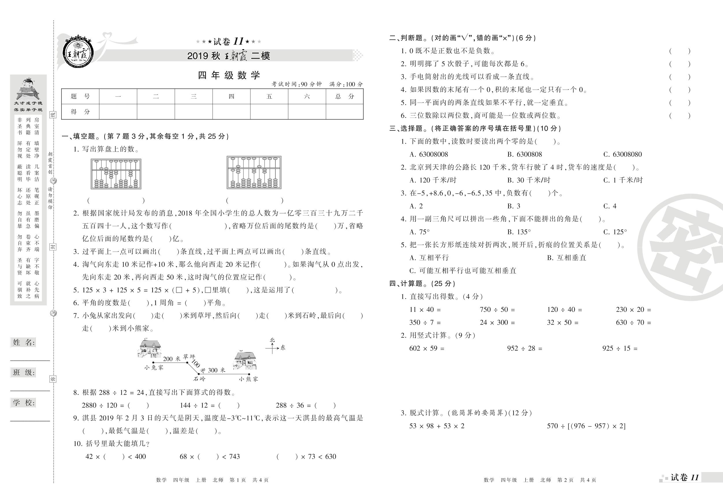 王朝霞期末模拟卷四年级上册数学(北师版)_R210804145222【11】
