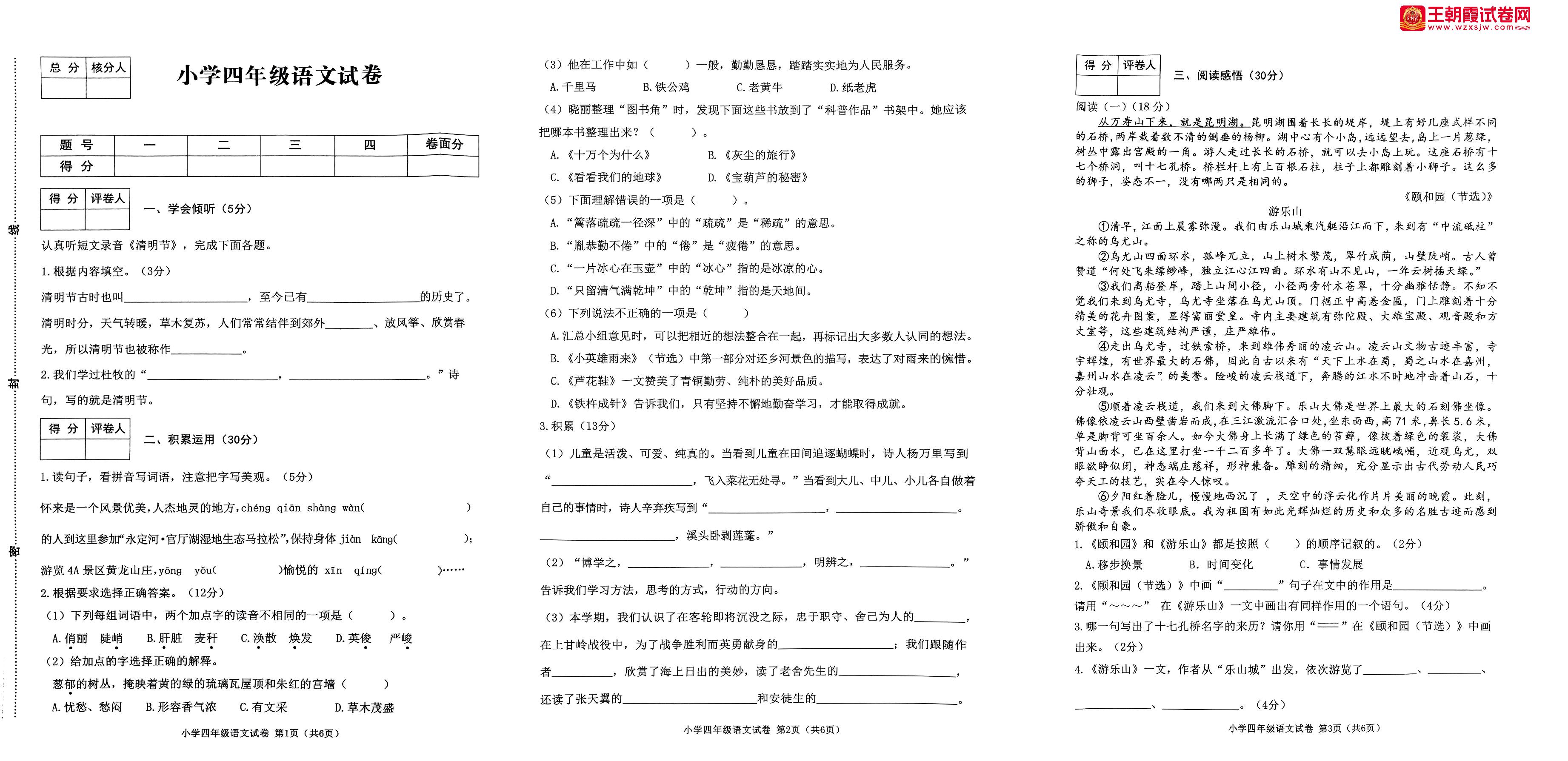 河北省张家口市怀来县2022-2023学年第二学期期末考试试卷四年级语文(人教版)【无听力音频】