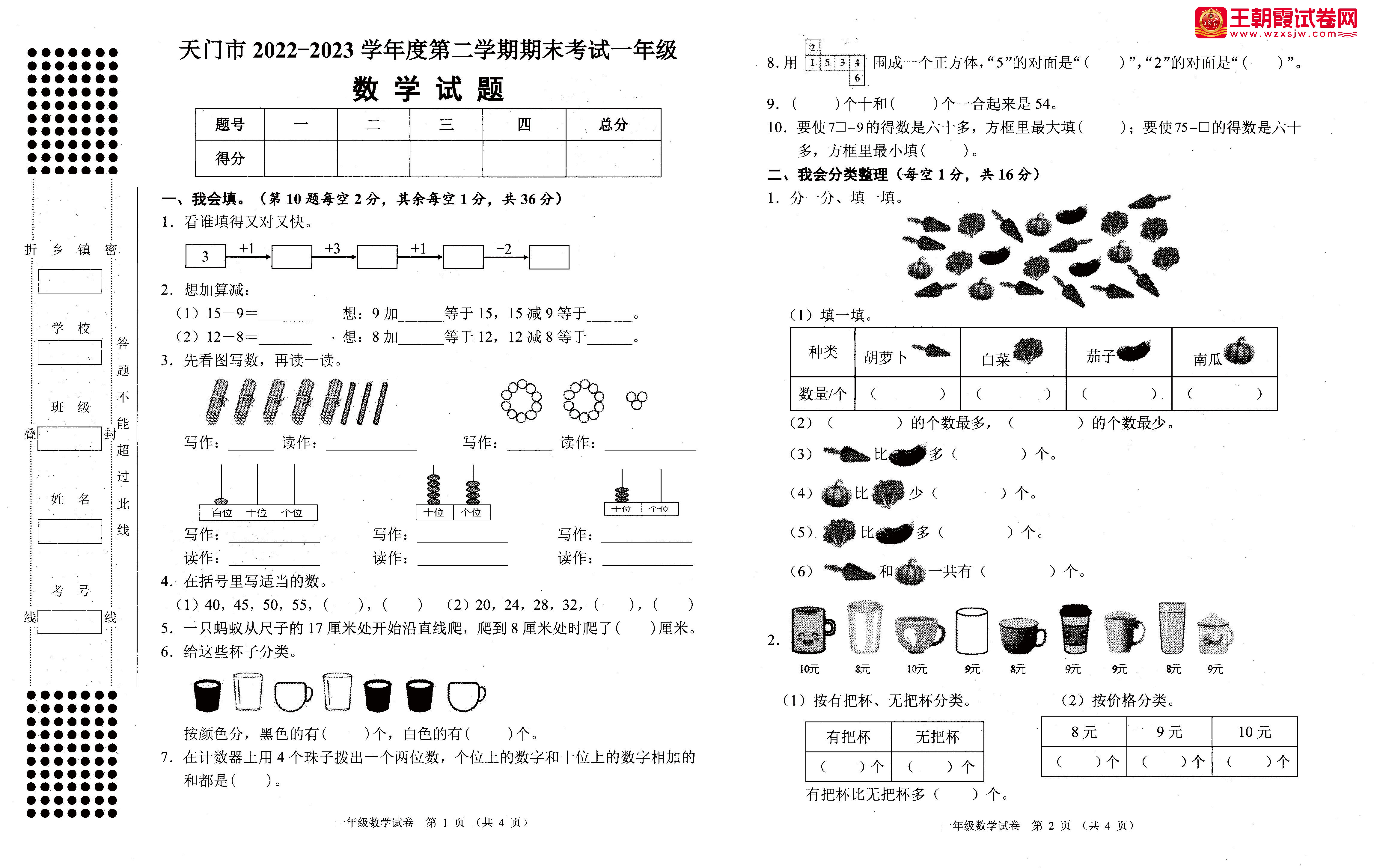 湖北省天门市2022-2023学年下学期期末试题一年级数学(人教版)