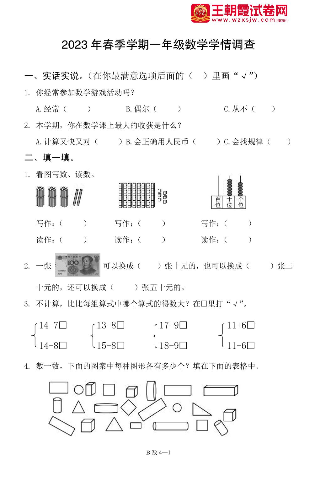一年级数学人教版下册期末卷