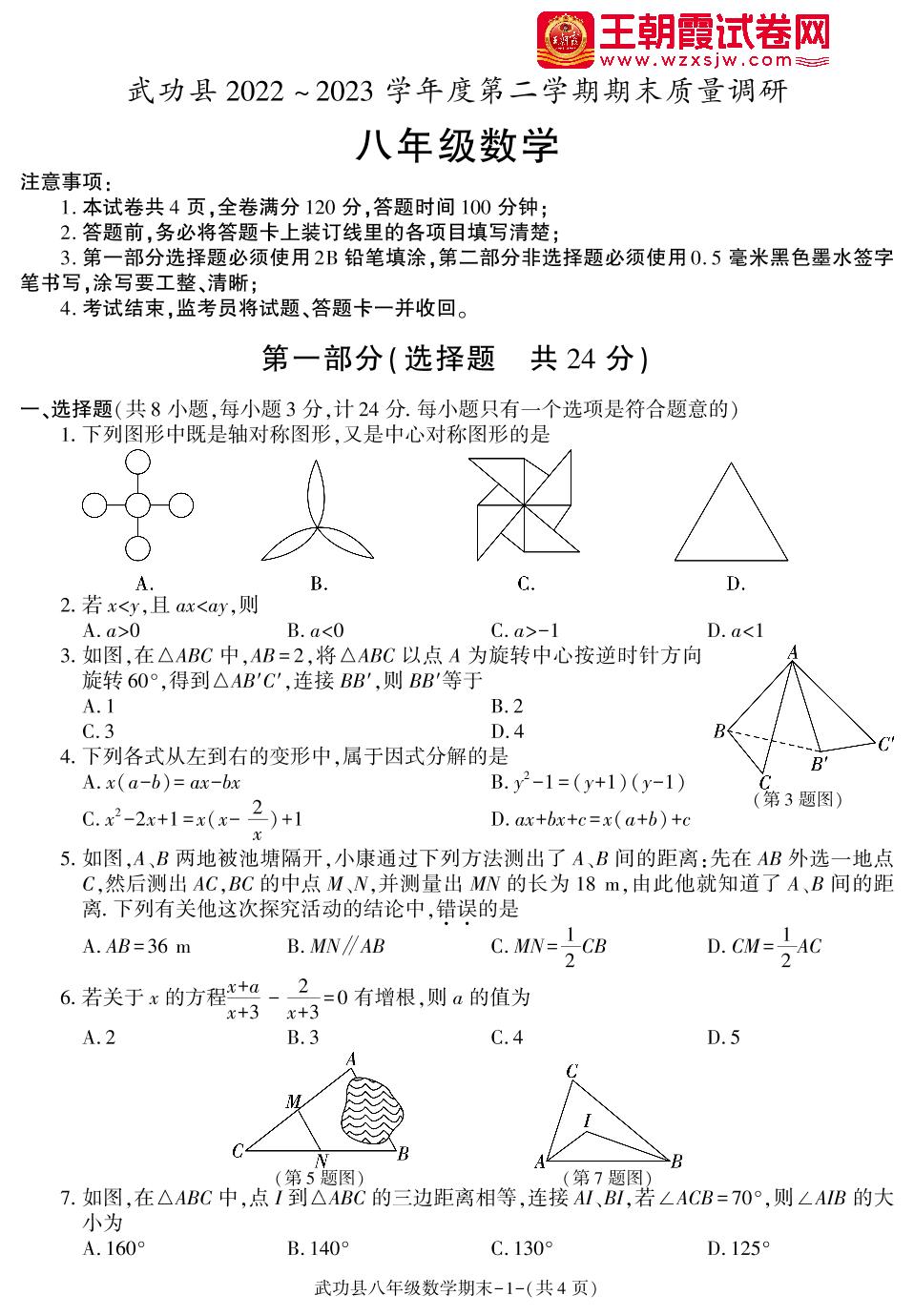 陕西省咸阳市武功县2022-2023学年度第二学期期末质量调研八年级数学(北师版)