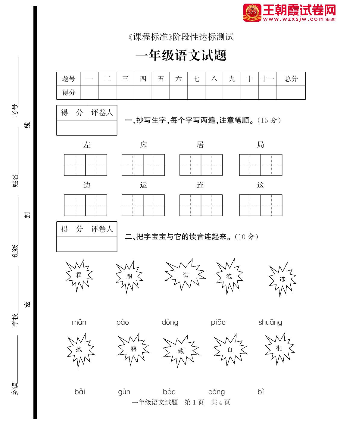 山东省济宁市泗水县2022-2023学年下学期(期末)阶段性达标测试一年级语文(人教版)
