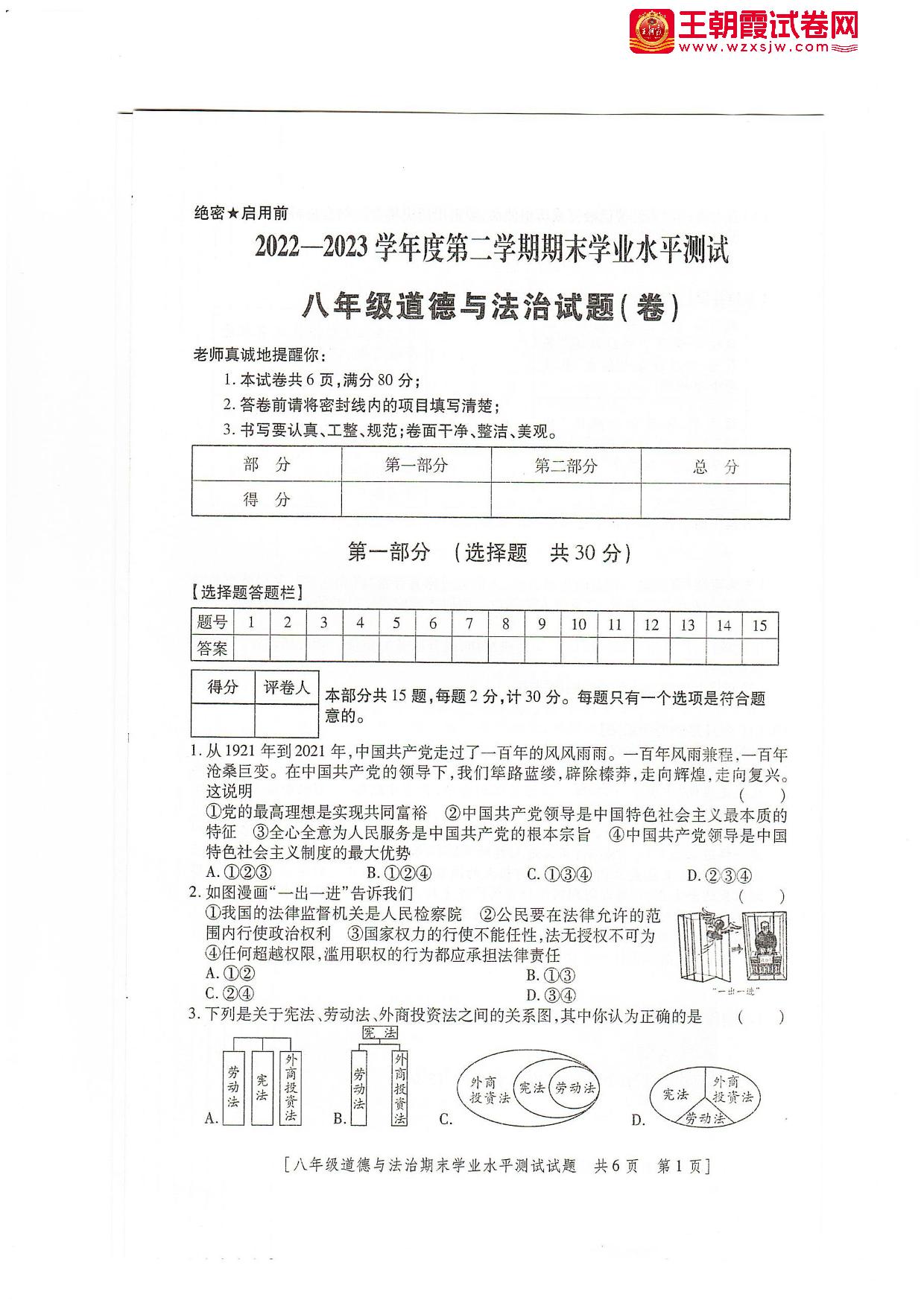 陕西省榆林市定边县第七中学2022-2023学年度第二学期期末学业水平测试八年级道德与法治(人教版)