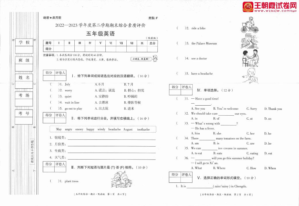 陕西省延安市富县2022-2023学年度第二学期期末综合素质评价五年级英语(陕旅版)