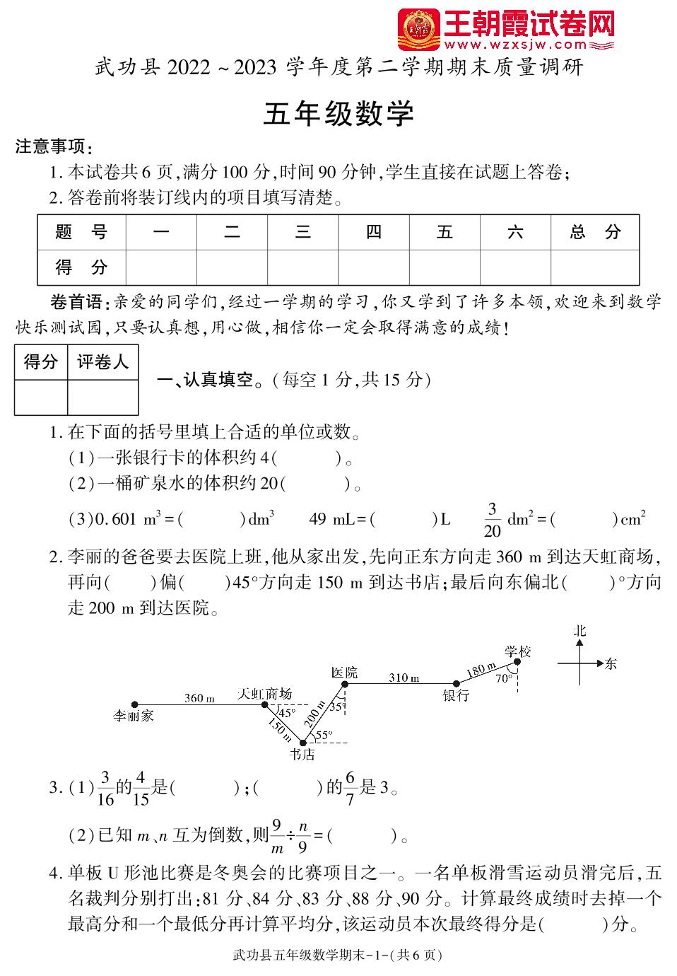 陕西省咸阳市武功县2022-2023学年度第二学期期末质量调研五年级数学(北师版)
