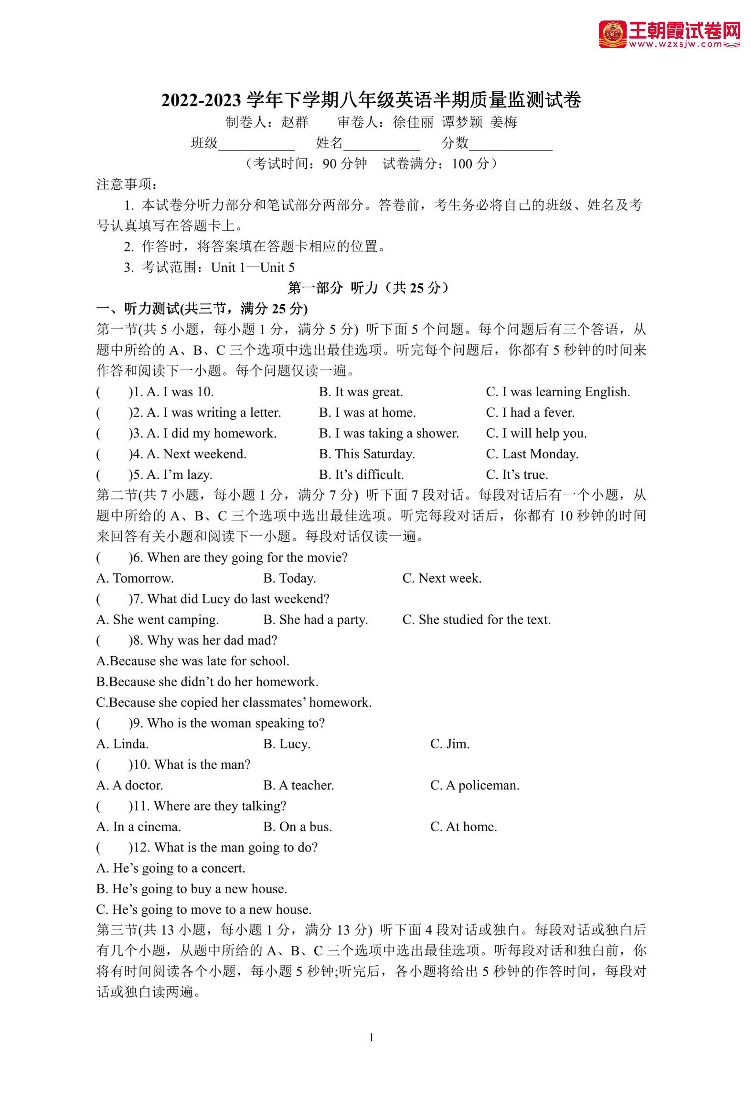贵州省贵阳市第四十中学2022-2023学年下学期期中质量监测试卷八年级英语(人教版)【无听力音频】
