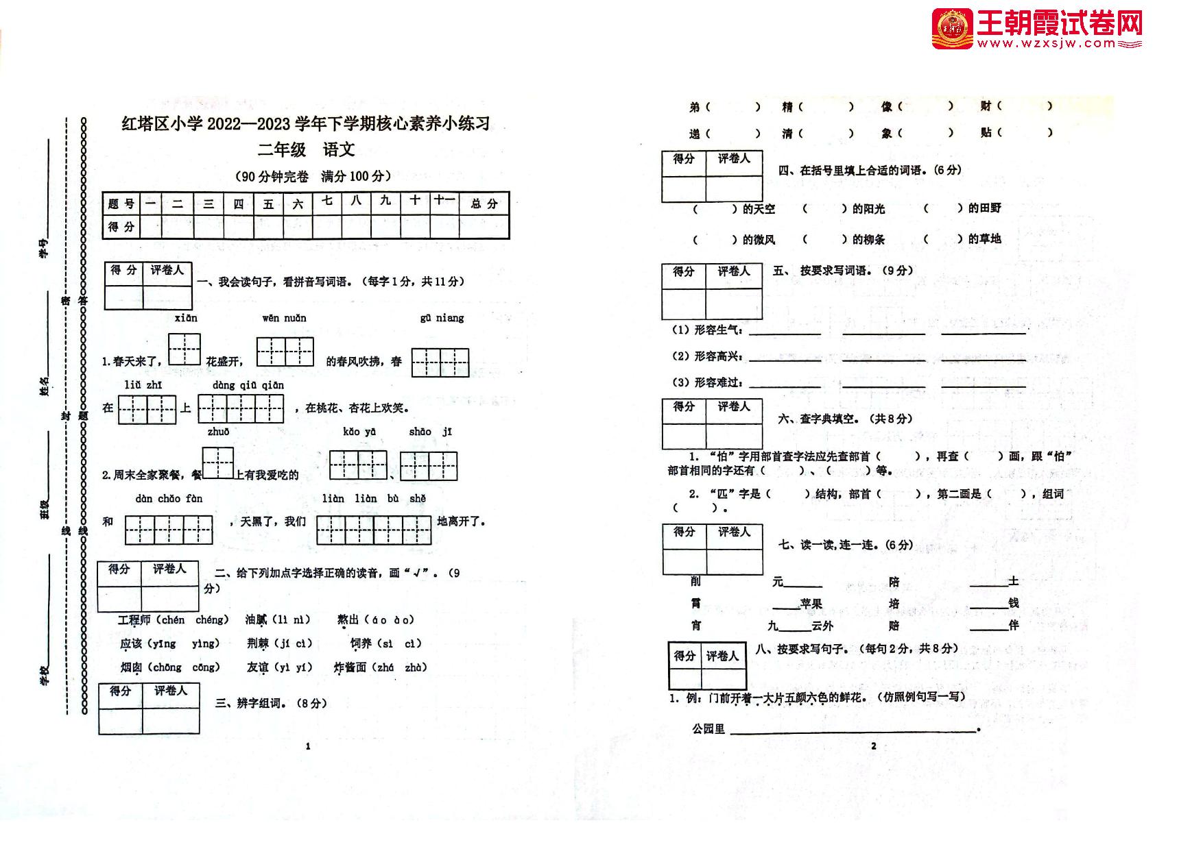 云南省玉溪市红塔区小学2022-2023学年下学期期中核心素养小练习二年级语文(人教版)