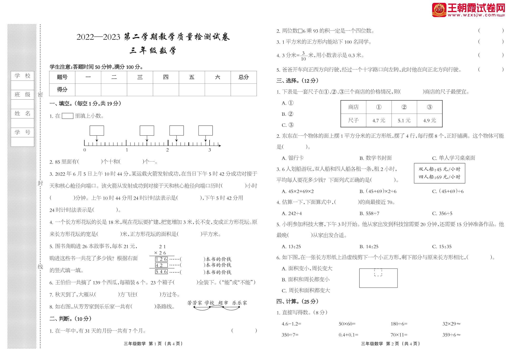 河北省衡水市景县2022-2023学年第二学期期末教学质量检测试卷三年级数学(人教版)