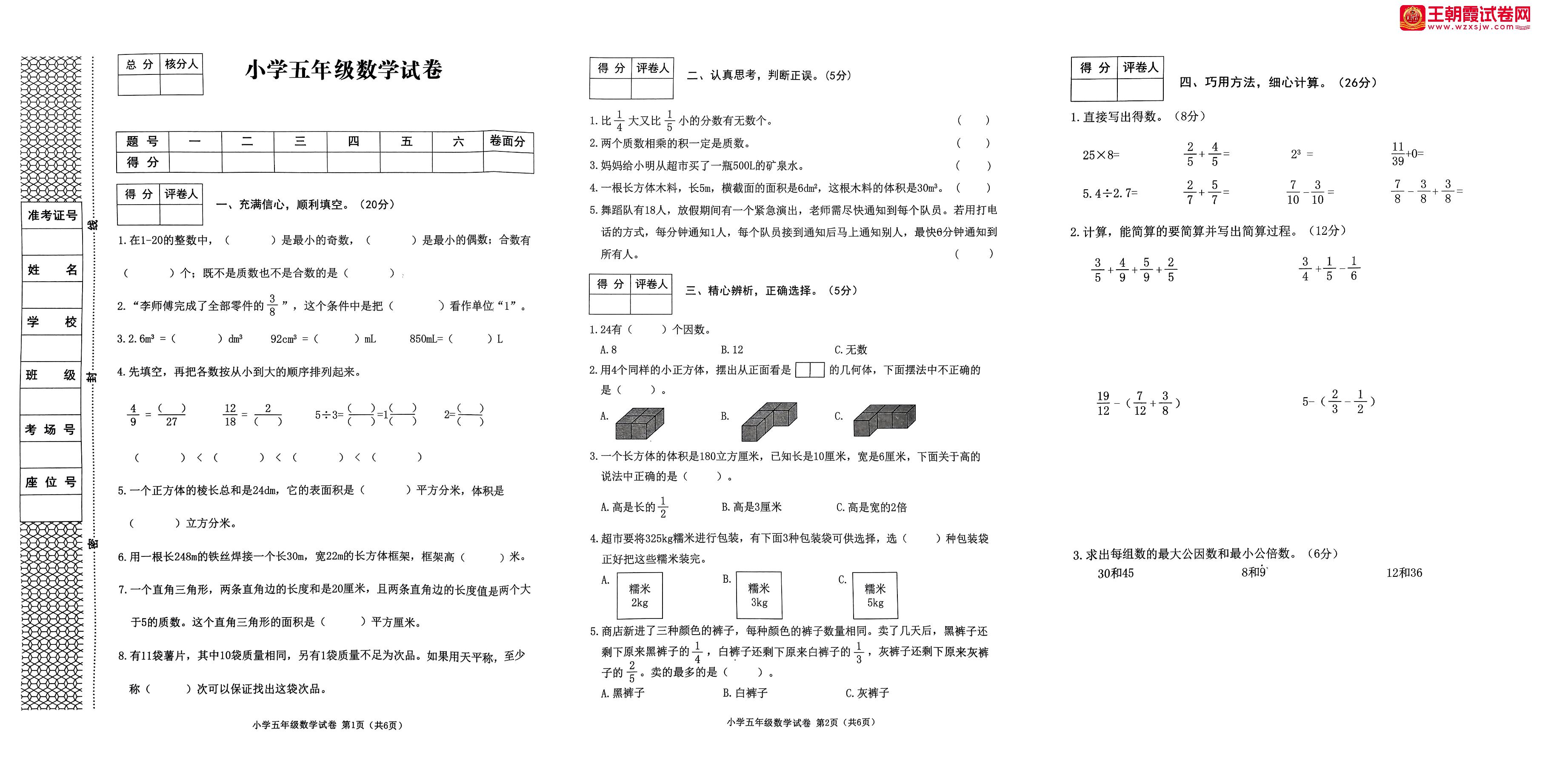 河北省张家口市怀来县2022-2023学年第二学期期末考试试卷五年级数学(人教版)