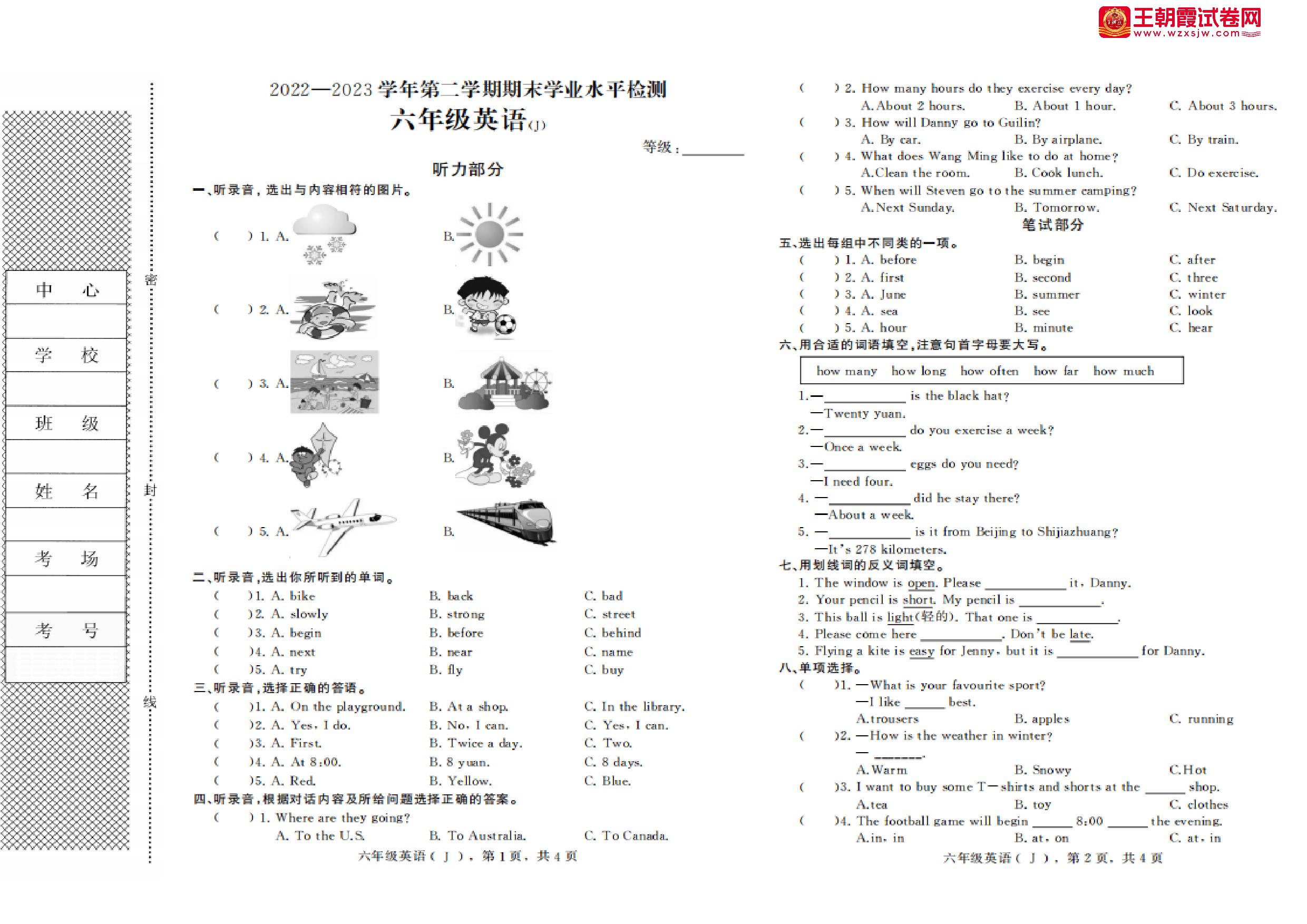 河北省石家庄市灵寿县2022-2023学年第二学期期末学业水平检测试题六年级英语(冀教版)【无听力音频】