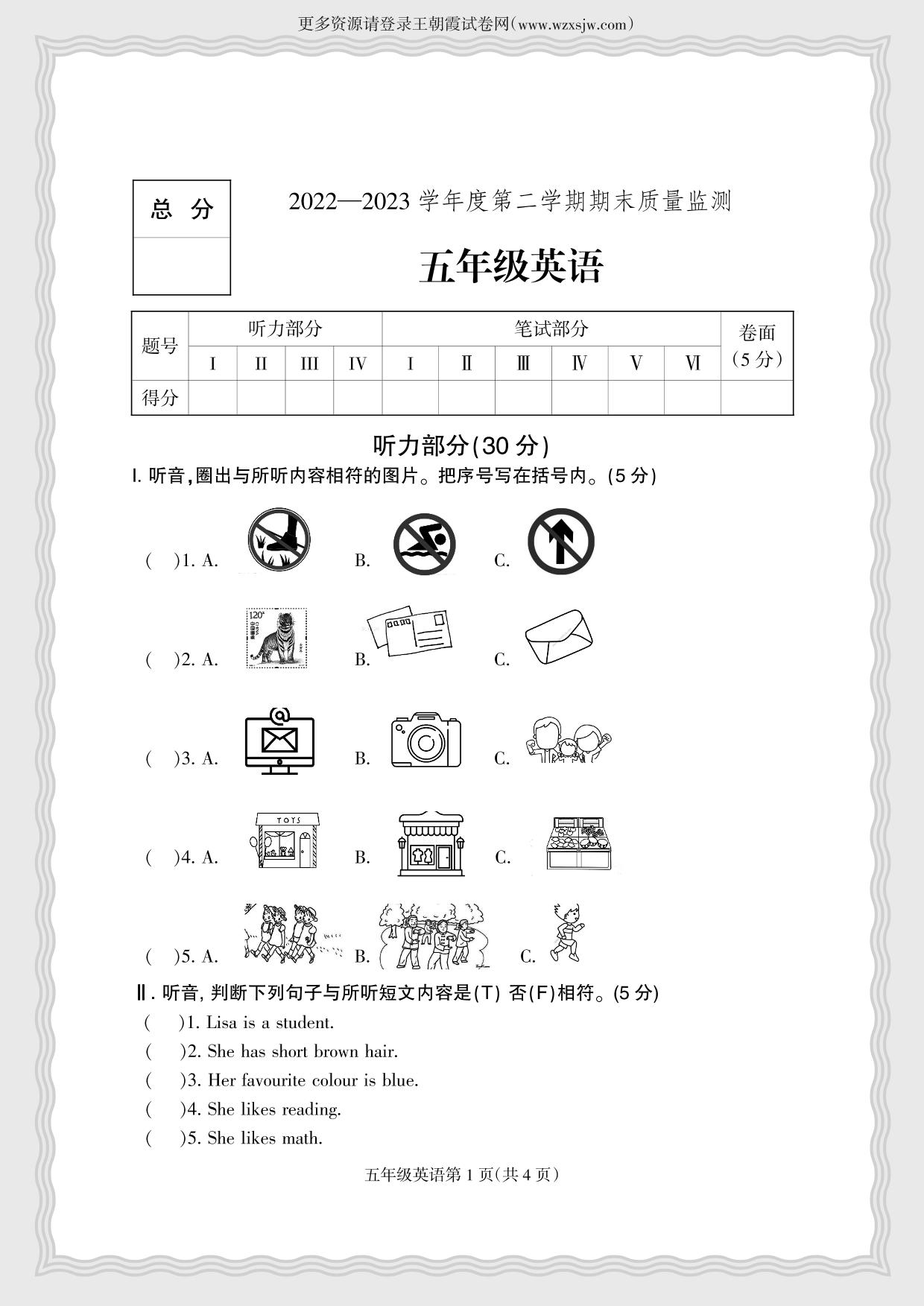河北省保定市定州市2022-2023学年度第二学期期末质量检测五年级英语(冀教版)【无听力音频】