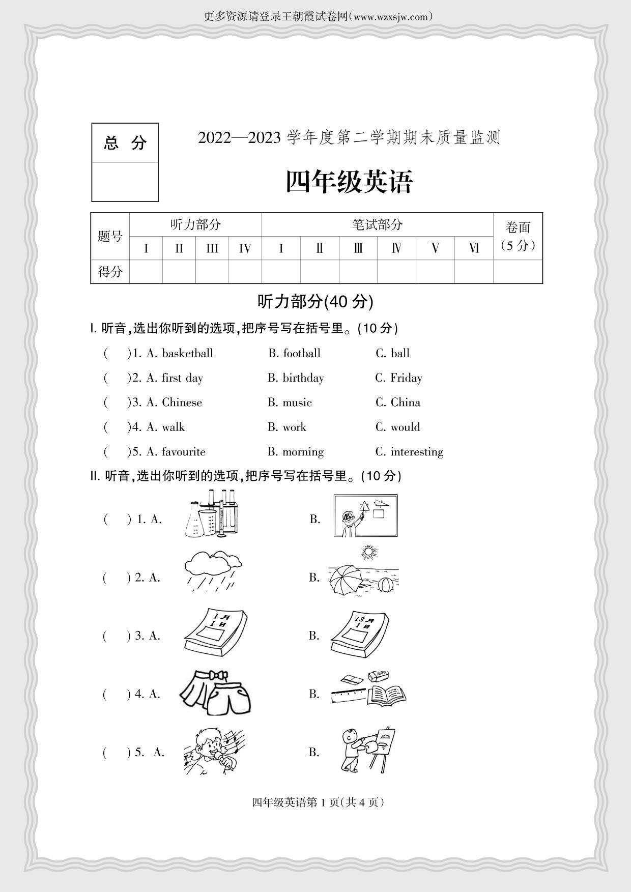 河北省保定市定州市2022-2023学年度第二学期期末质量检测四年级英语(冀教版)【无听力音频】