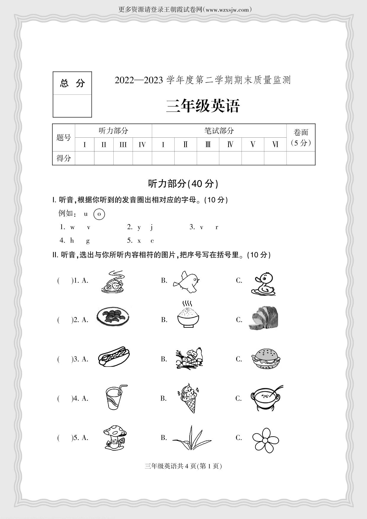河北省保定市定州市2022-2023学年度第二学期期末质量检测三年级英语(冀教版)【无听力音频】