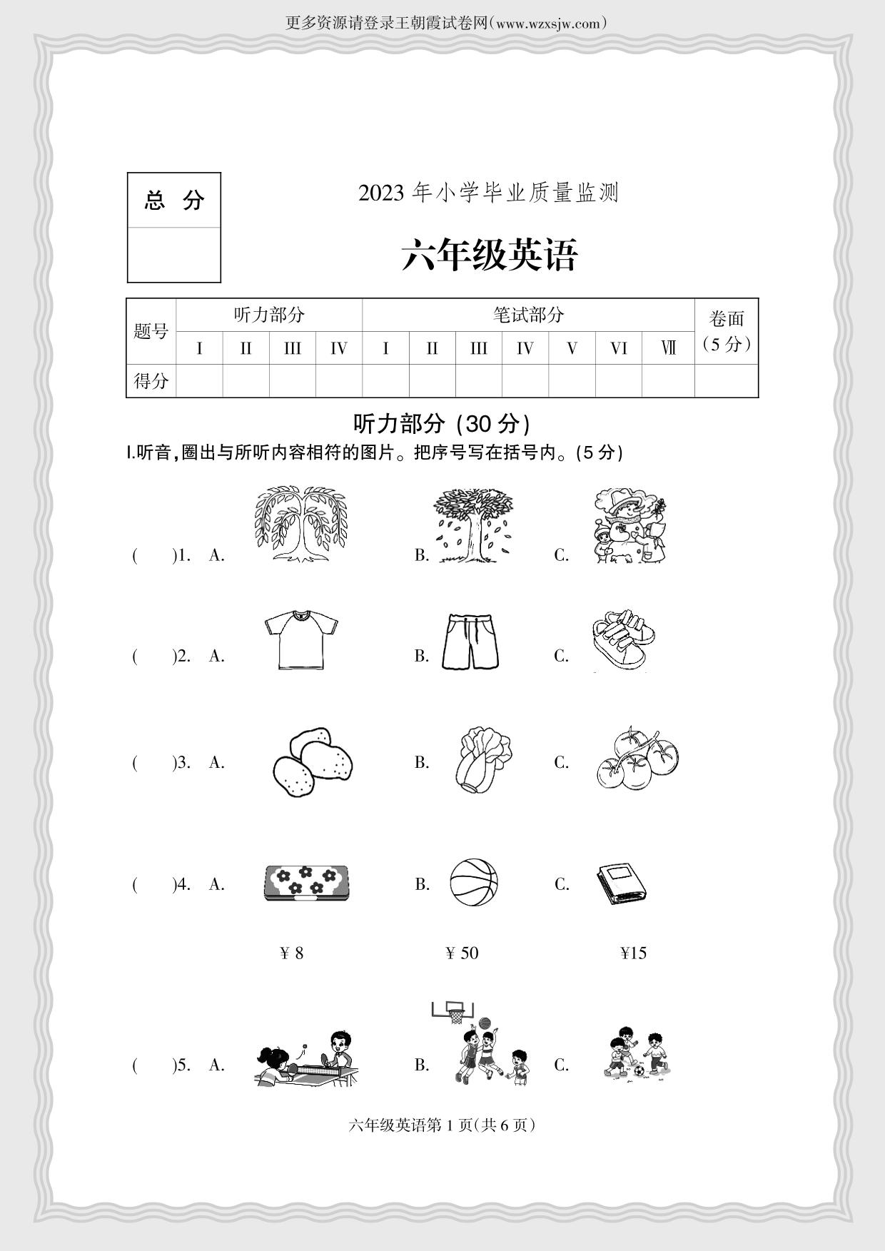 河北省保定市定州市2022-2023学年度第二学期毕业质量检测六年级英语(冀教版)【无听力音频】