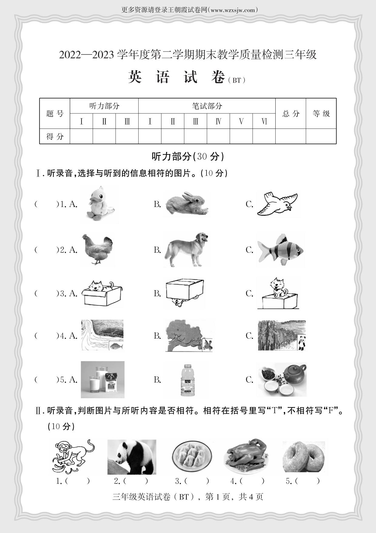 三年级英语冀教版下册期末卷