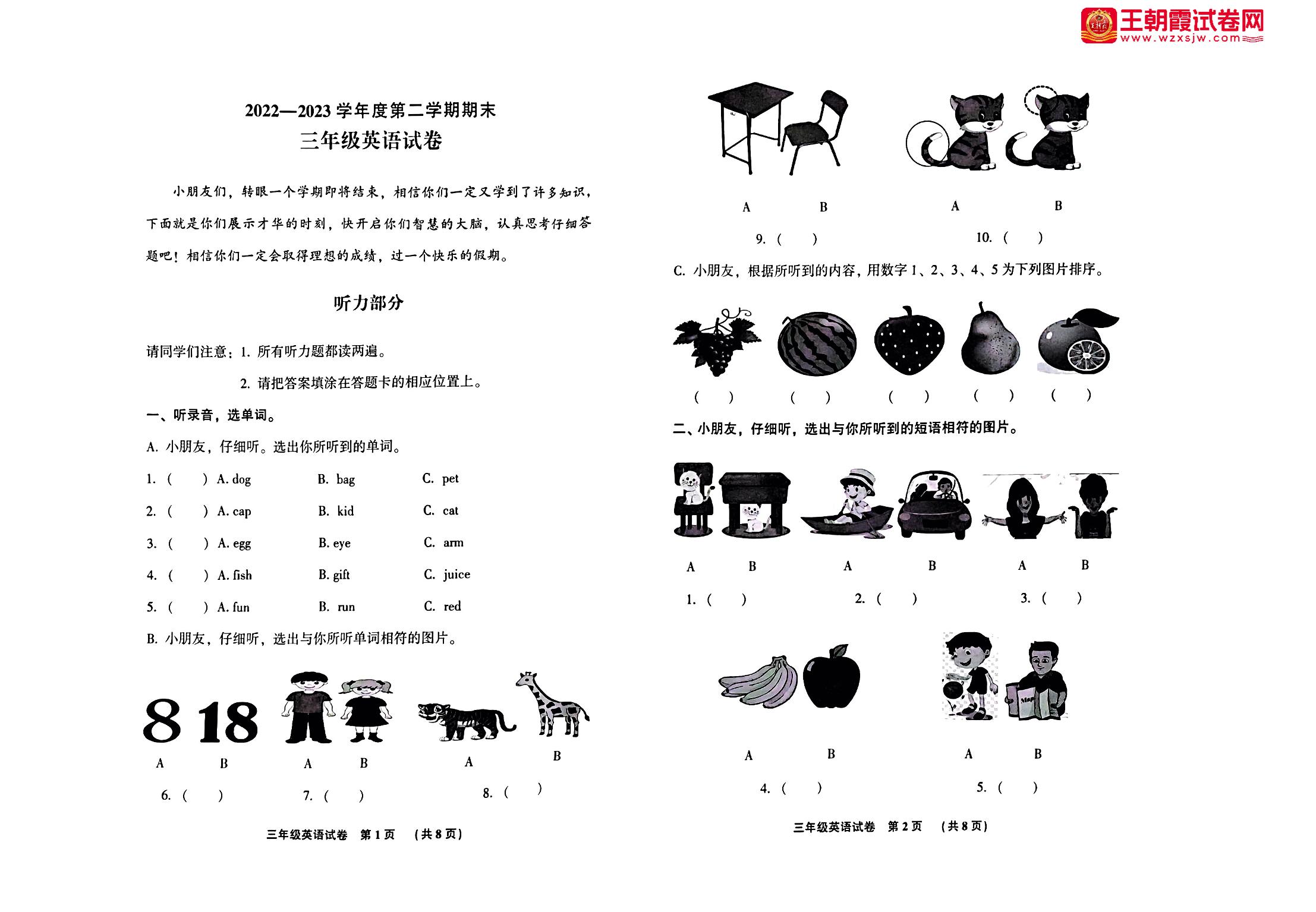 河北省廊坊市三河市2022-2023学年度第二学期期末试卷三年级英语(人教PEP版)【无听力音频】