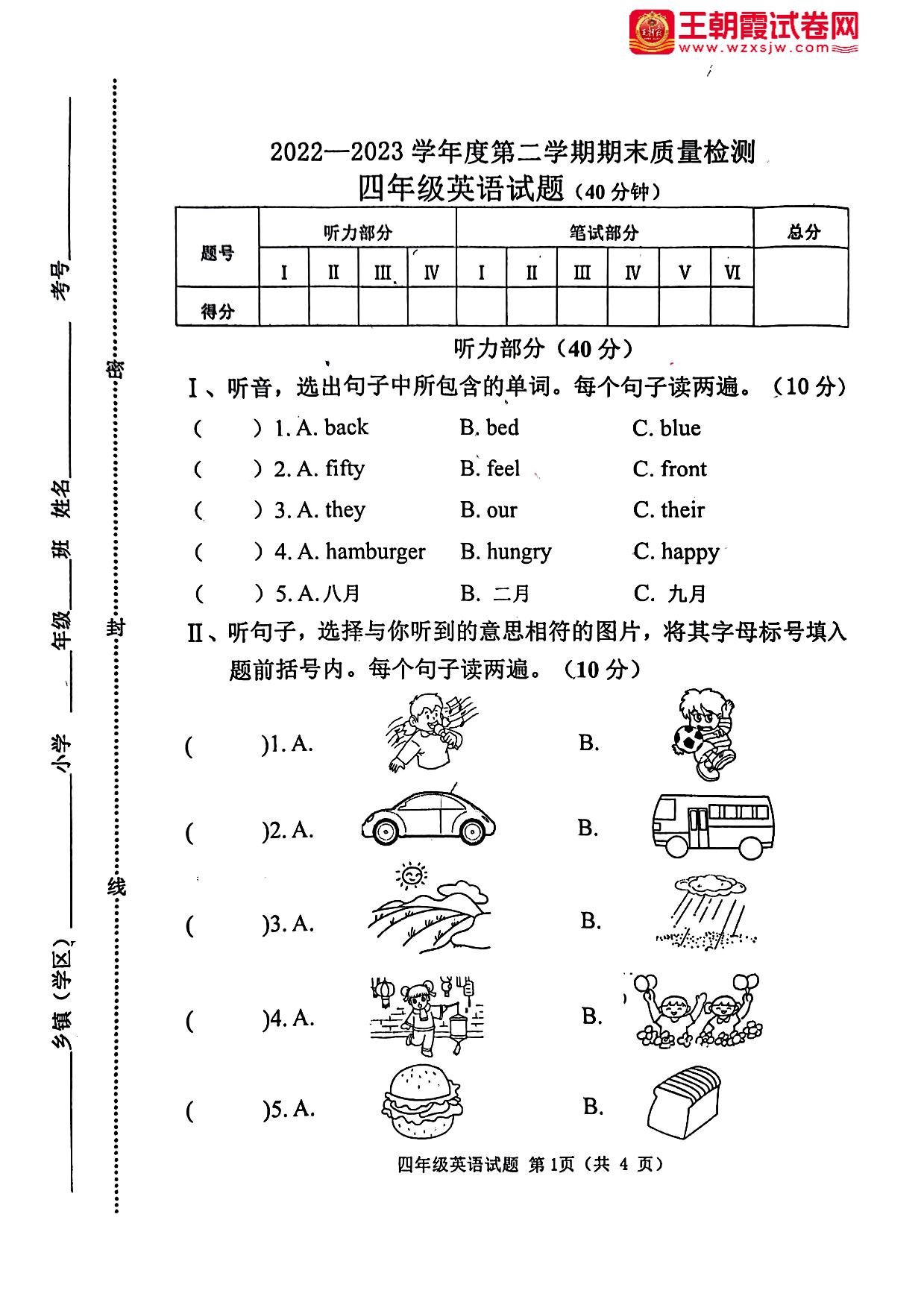 四年级英语冀教版下册期末卷