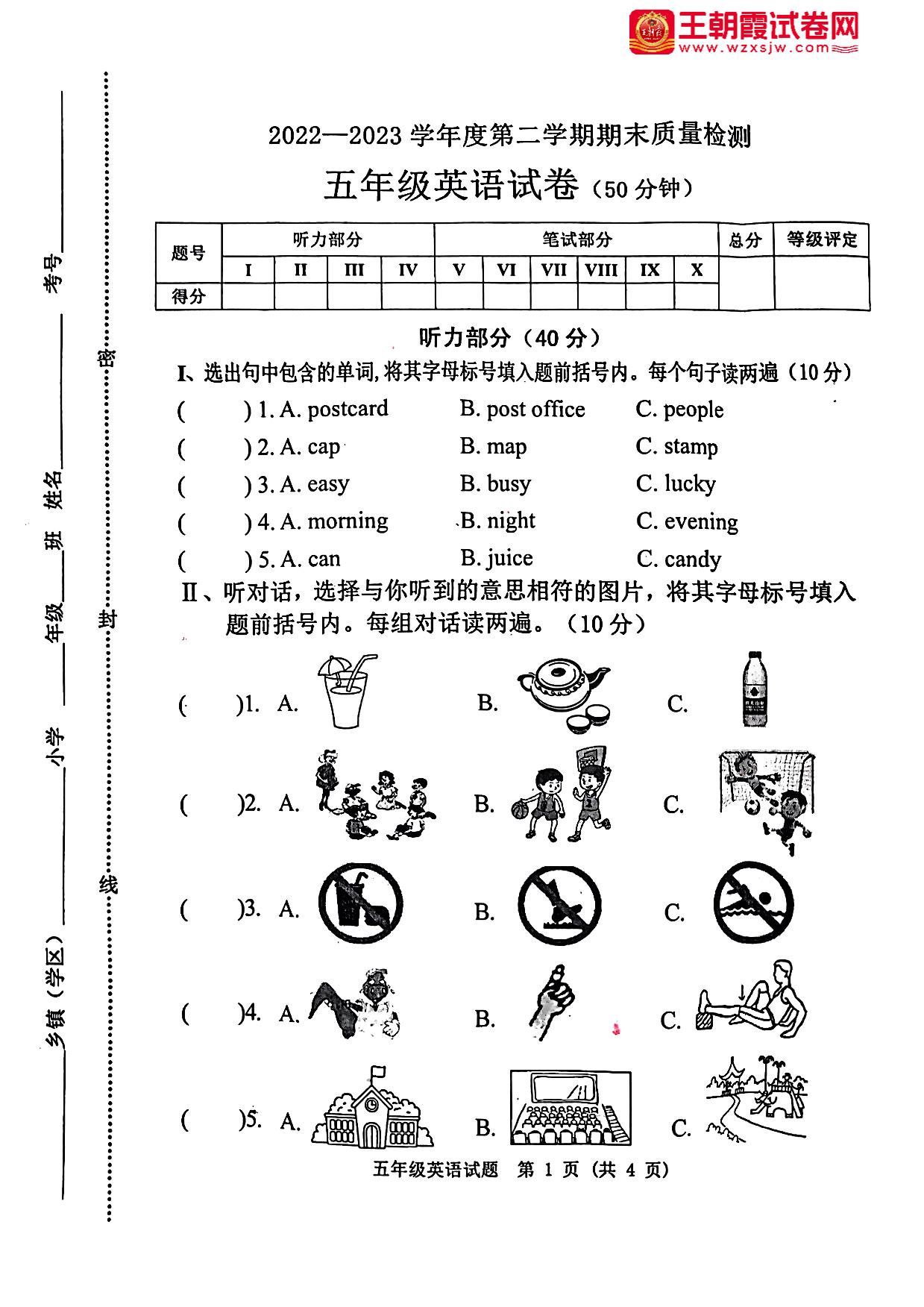 河北省秦皇岛市昌黎县2022-2023学年度第二学期期末质量检测试题五年级英语(冀教版)