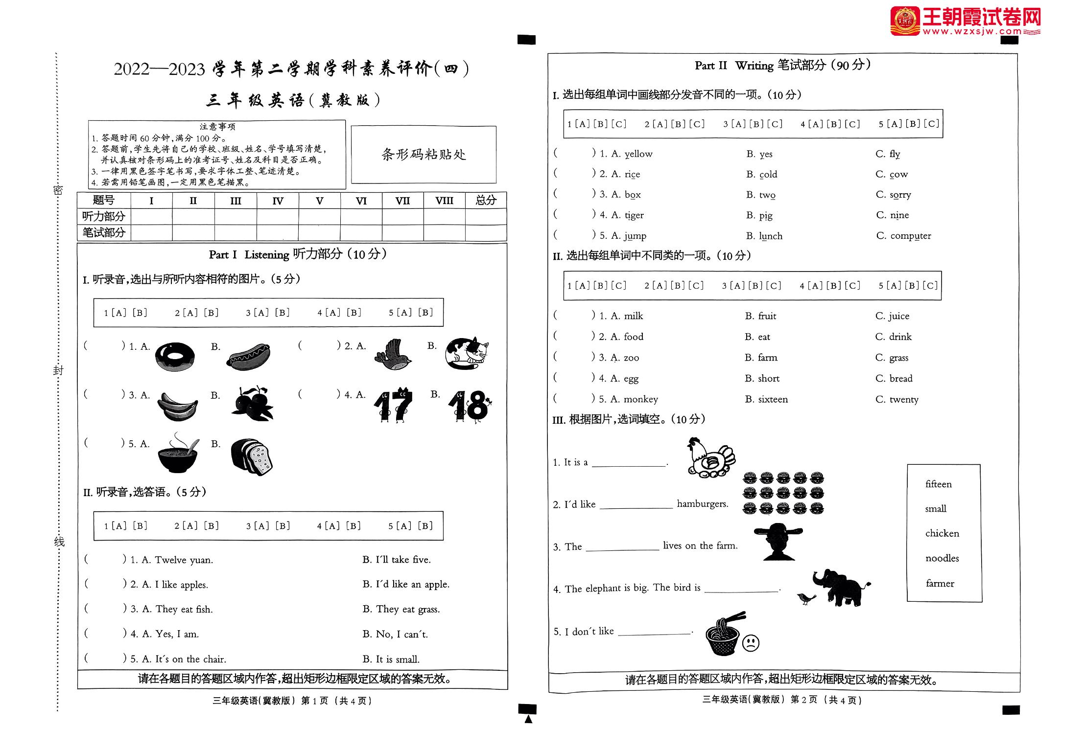 河北省衡水市深州市2022-2023学年第二学期期末学科素养评价三年级英语(冀教版)